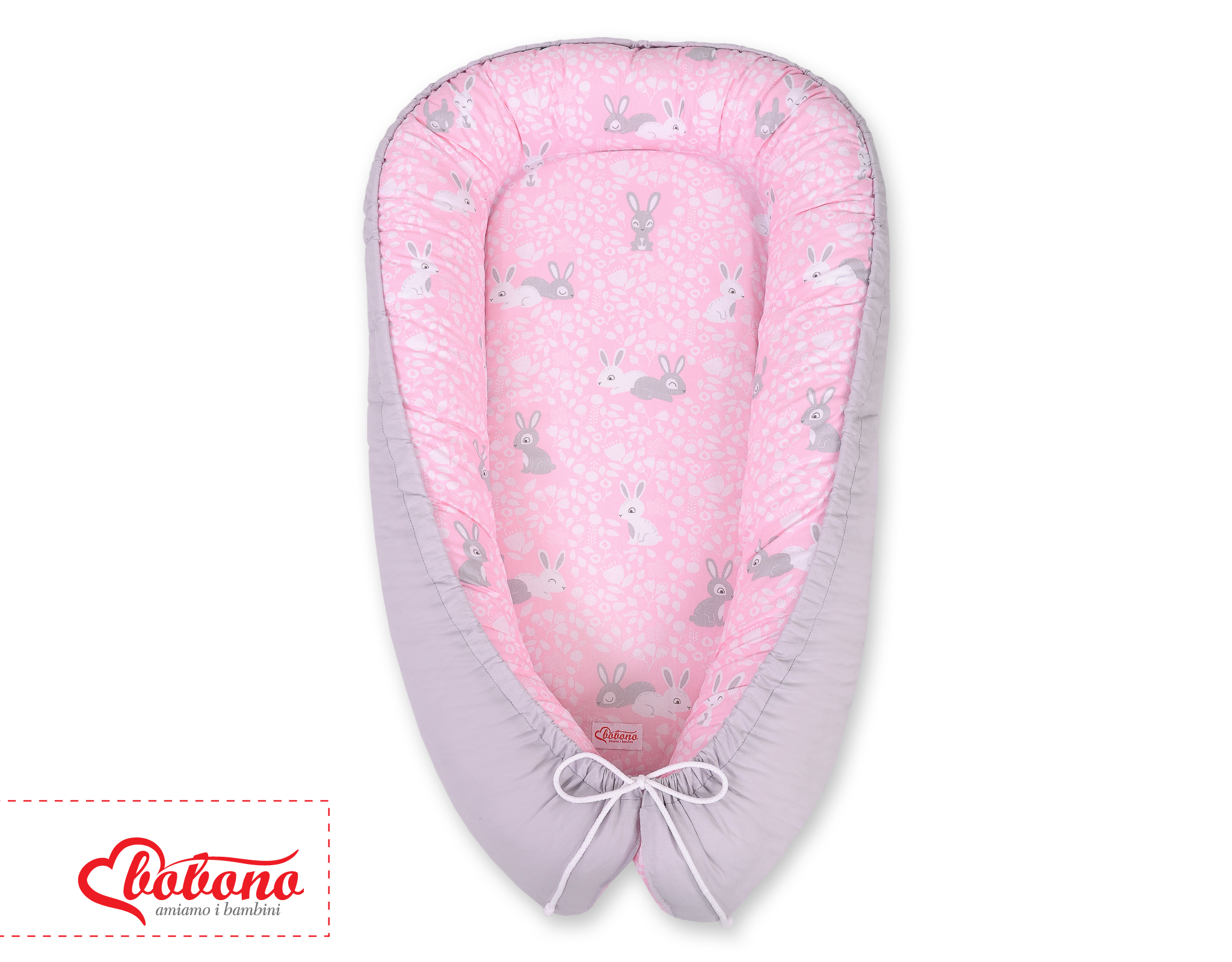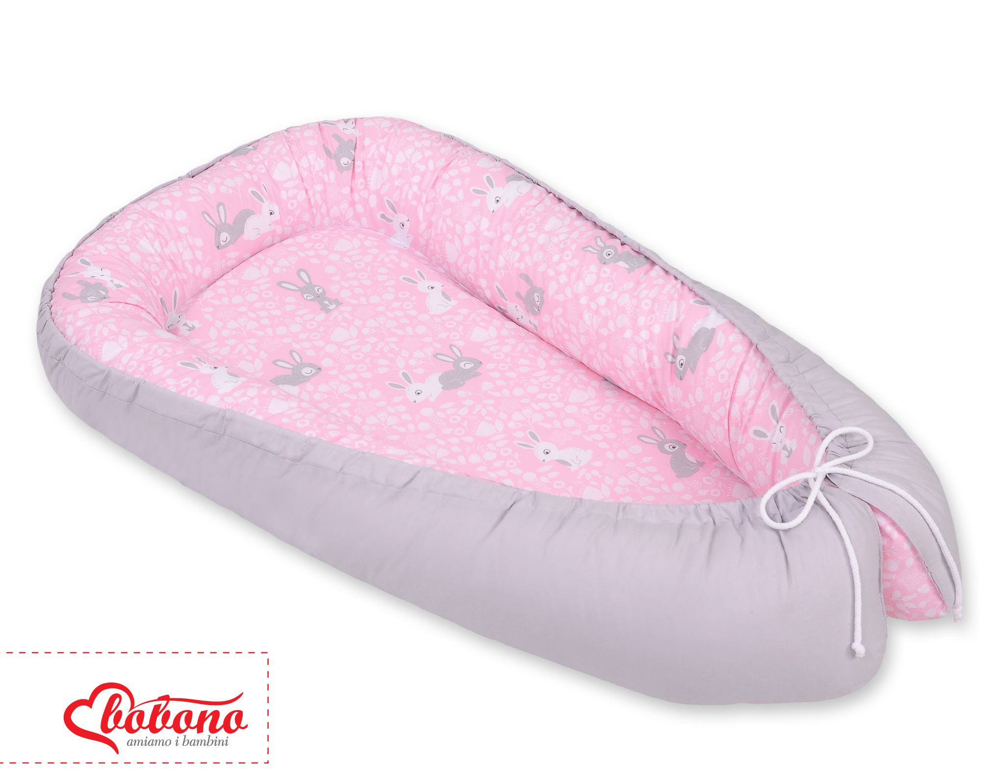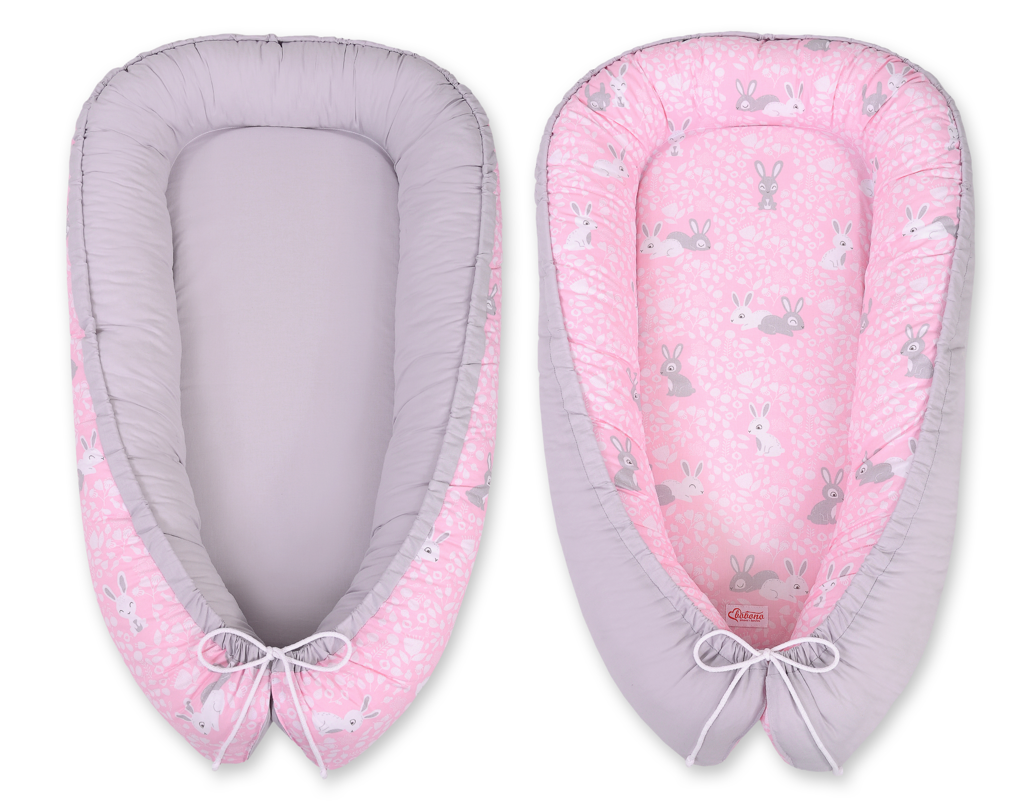 Doublesided Babynest- pink rabbits/gray