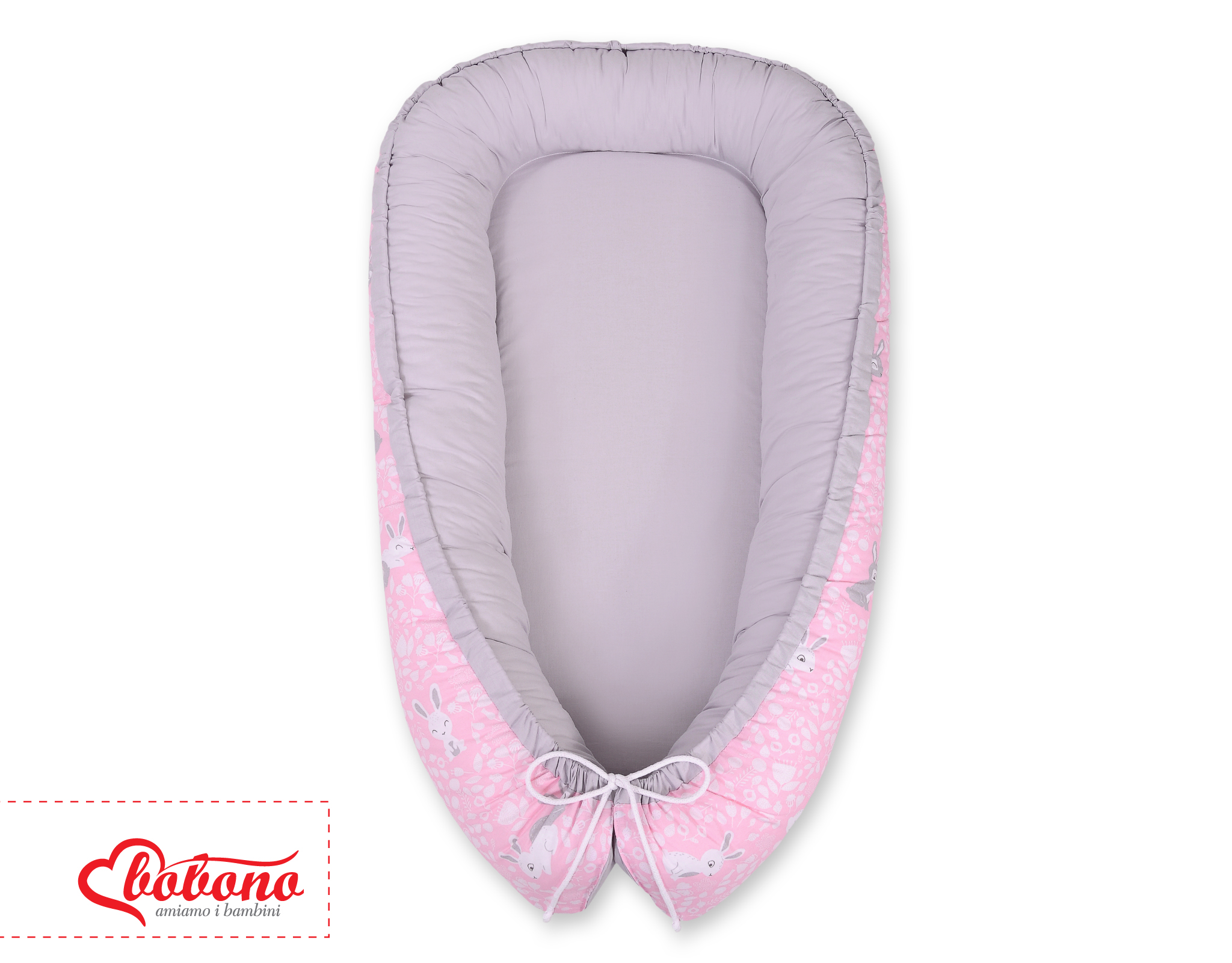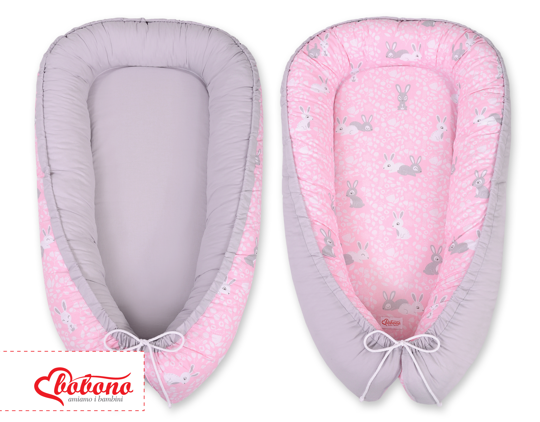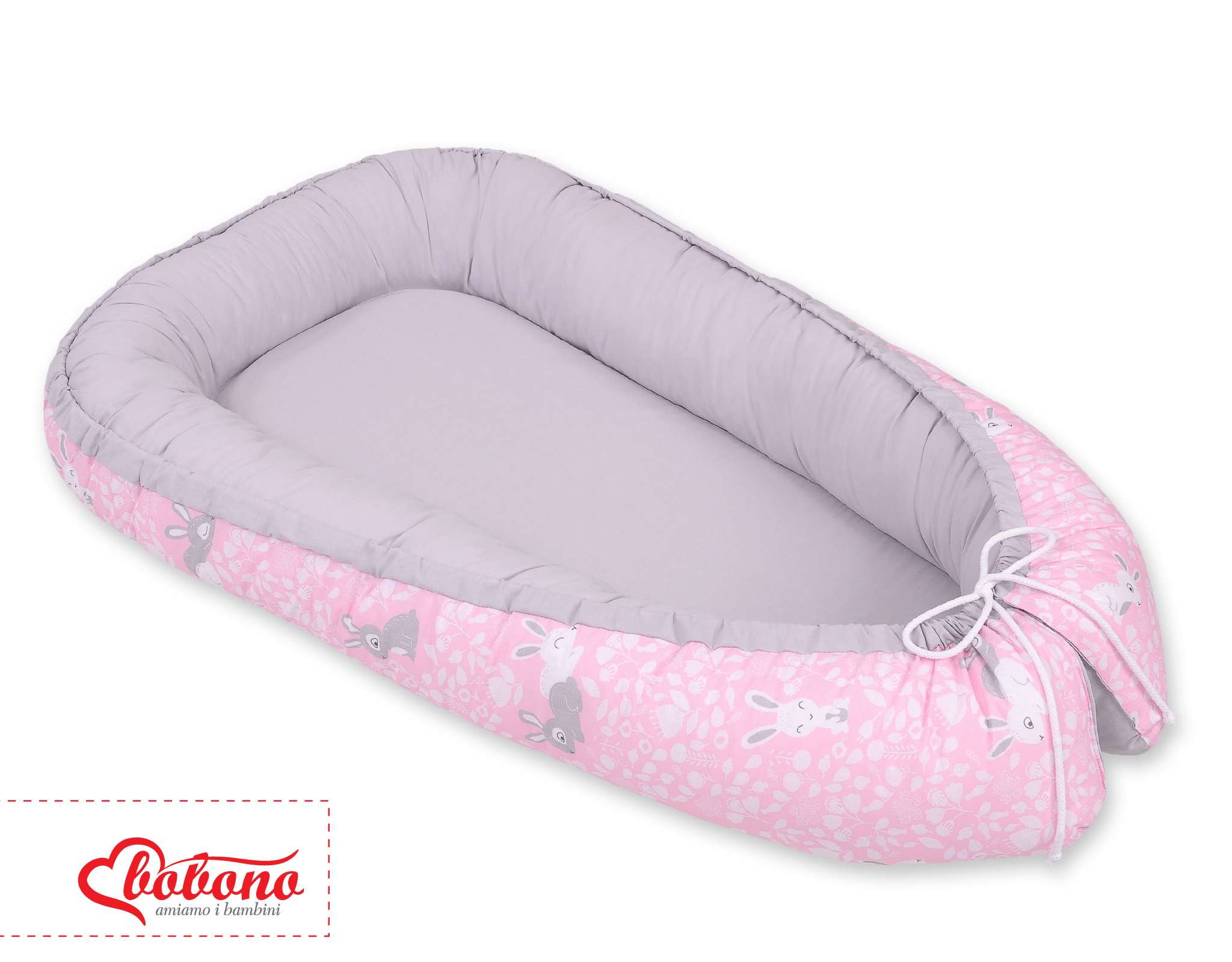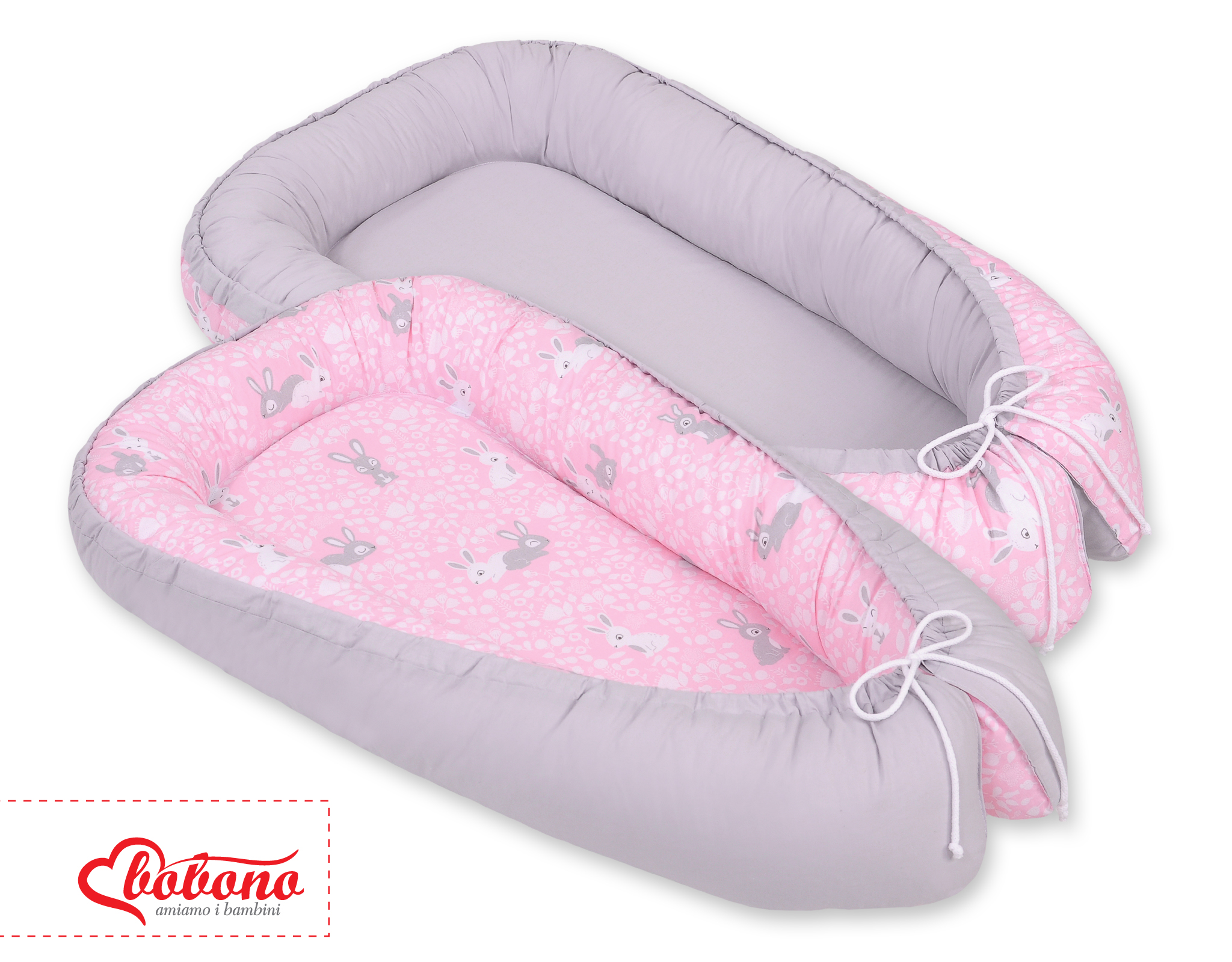 Baby Shop » Bedding sets for cots and beds » Collection FUN & JOY » Baby nest » Doublesided Babynest- pink rabbits/gray
