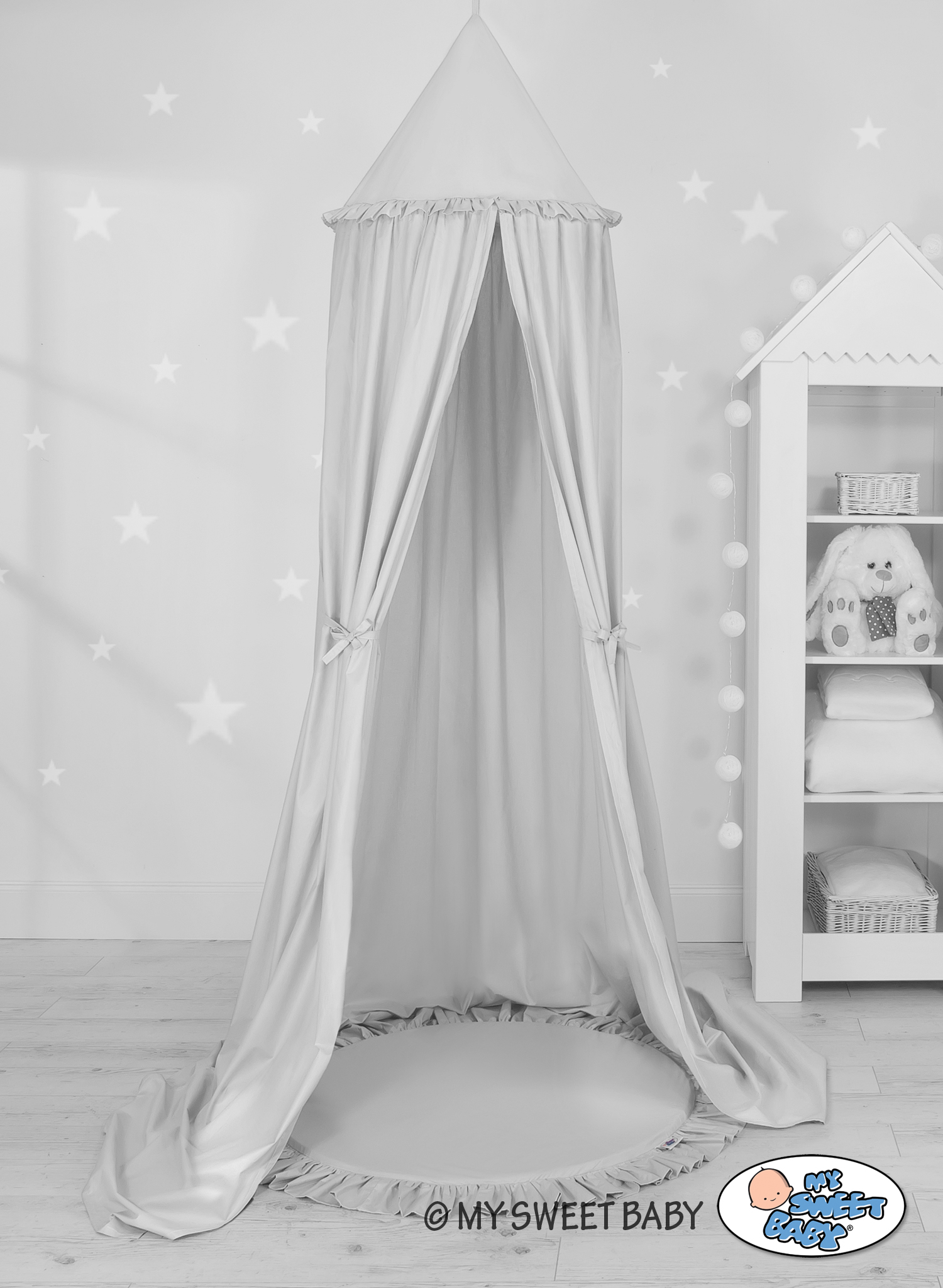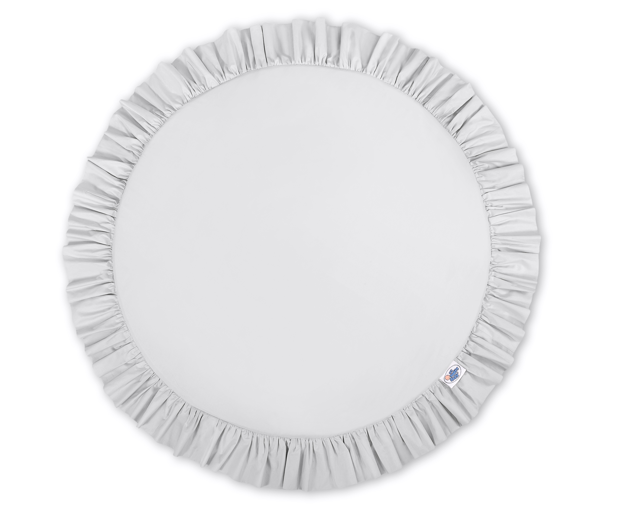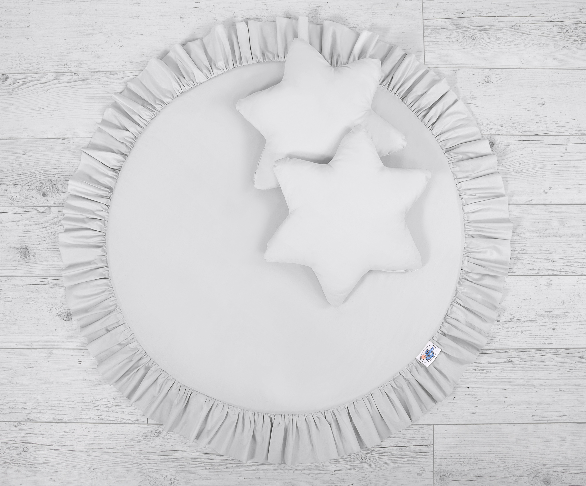 A floor play mat with ruffle. It can be used as a carpet,  play mat, or as a floor mat for the long canopy. From the first days of life can it be used as a place to rest or as a tummy time play mat. It has a soft filling that perfectly isolates from the hard and cold floor. The cover is made of OKOTEX certified 100% cotton.  The bottom of the play mat is made of a modern, anti-allergic, attested material. The bottom can be removed and the cover can be washed.