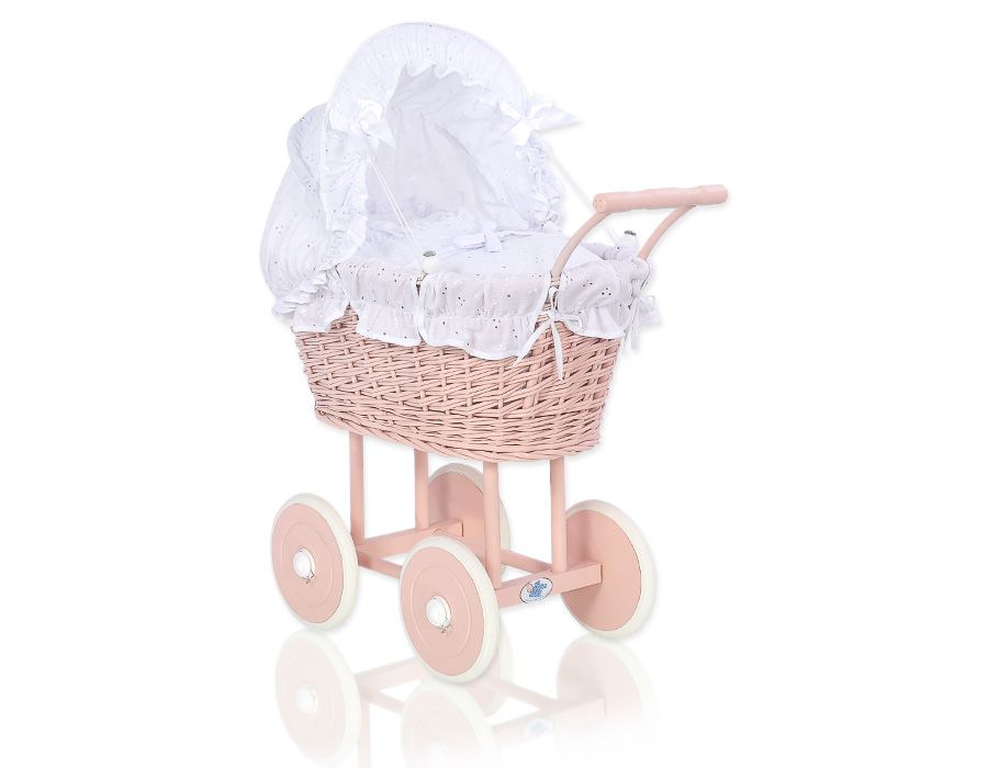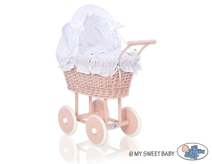 Baby Shop » Baby Toys » Doll prams » Wicker Doll prams » Powder pink Wicker Dolls Prams » Handmade Doll Pram made of Powder Pink Wicker and Wood White Bedding Set