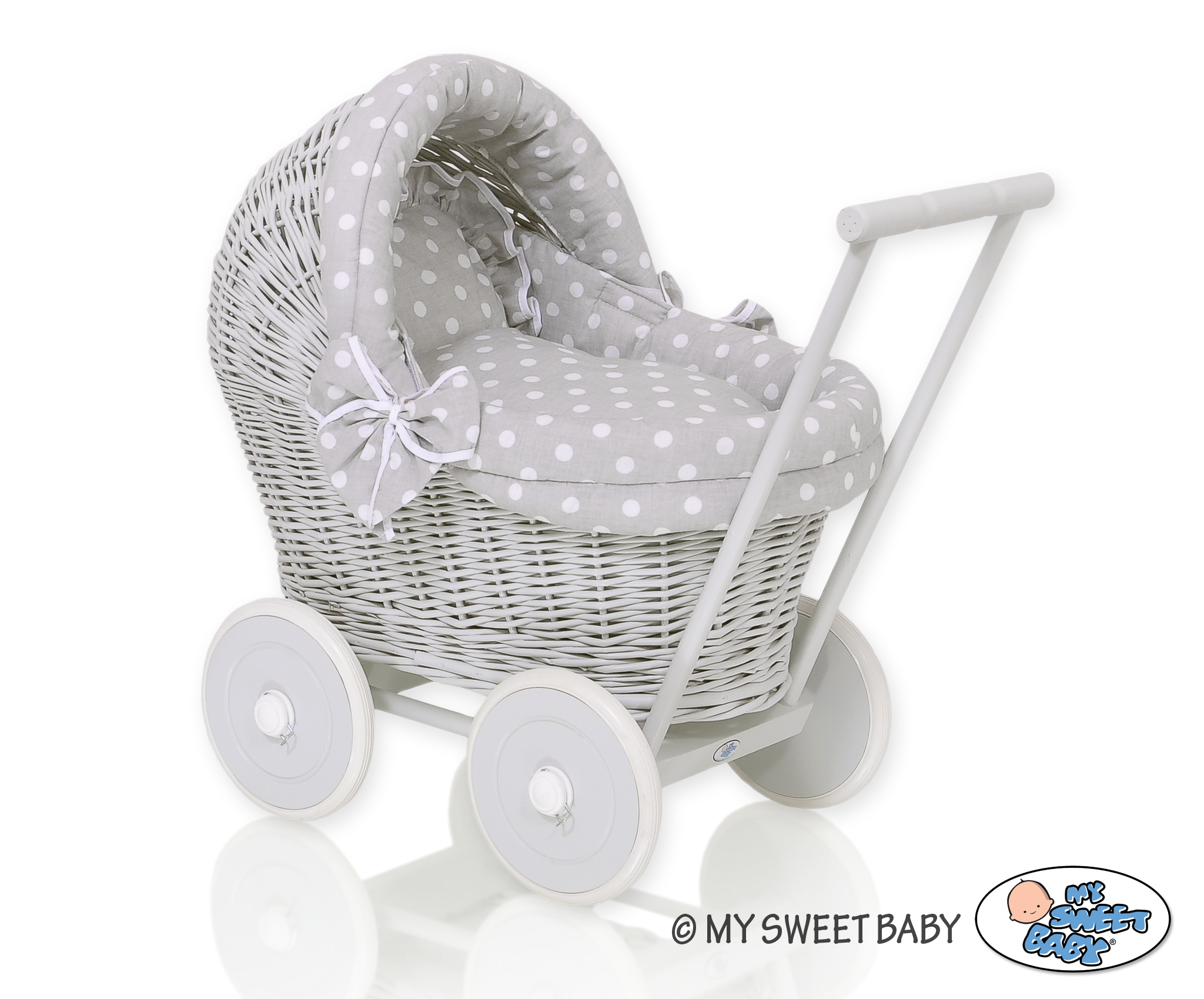 Handmade Retro Style Gray Wicker Doll Carriage Bedding Set White Dots on GrayHandmade Retro Style Gray Wicker Doll Carriage Bedding Set White Dots on GrayHandmade Retro Style Gray Wicker Doll Carriage Bedding Set White Dots on GrayHandmade Retro Style Gray Wicker Doll Carriage Bedding Set White Dots on Gray
