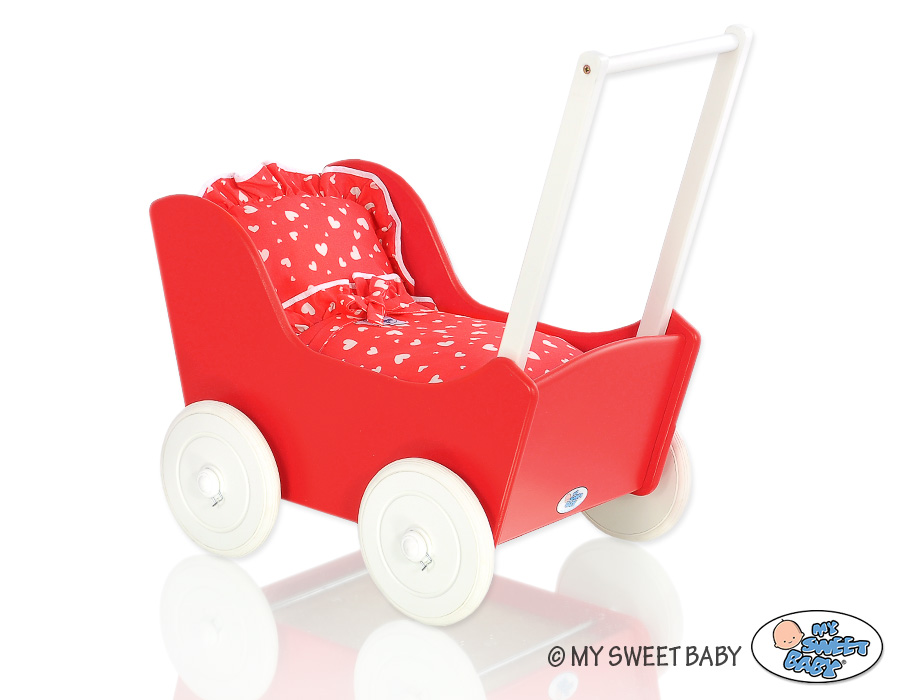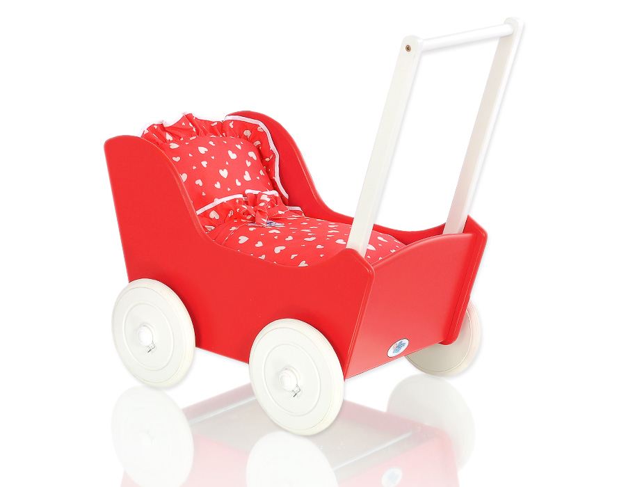 Great gift for a little girl. The doll pram is the top product for children. Made of safe materials. Painted with ecological paints. Wheels are mounted on metal axles, with a click-clack mechanism, which makes them easier to turn and do not fall.
