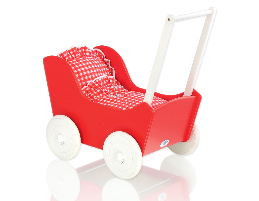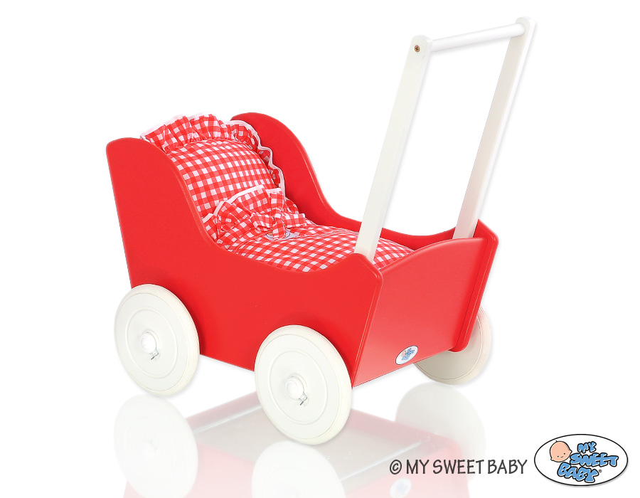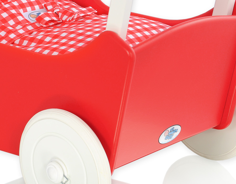 Baby Shop » Baby Toys » Doll prams » Doll prams » Red » Handmade Wooden Carriage Doll Pram Red Red Check Bedding