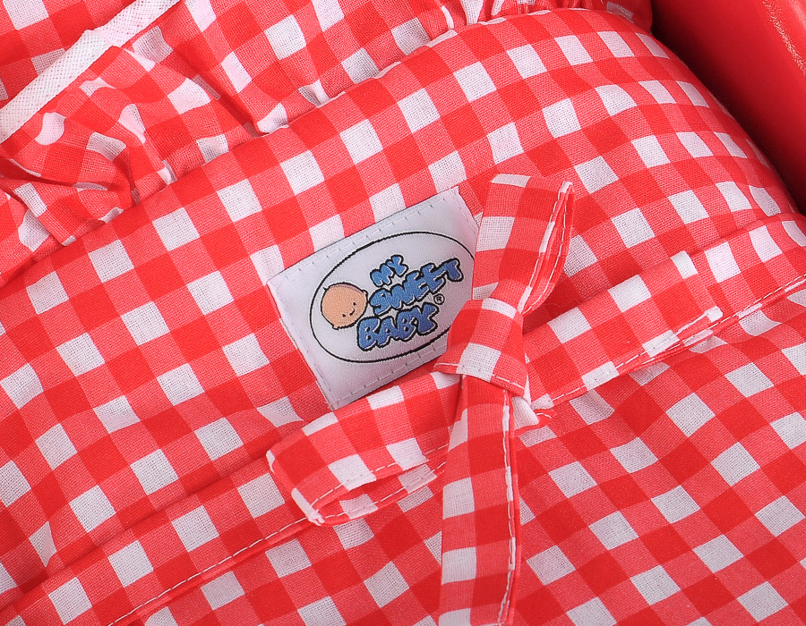Bedding Check Red Red Pram Doll Carriage Wooden Handmade