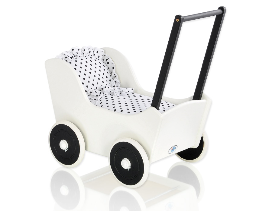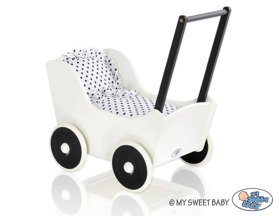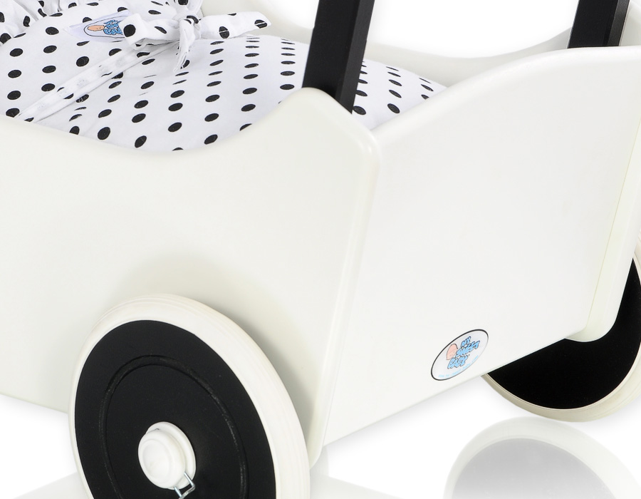 Baby Shop » Baby Toys » Doll prams » Doll prams » Black and white » Handmade wooden Doll pram Black White White with Black Dots Bedding Set