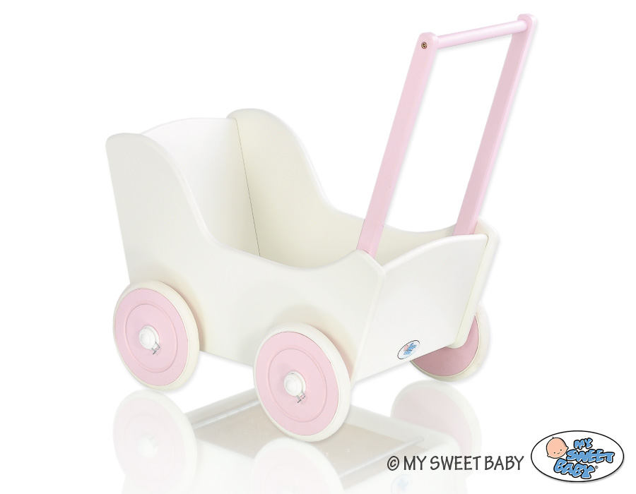 Baby Shop » Baby Toys » Doll prams » Doll prams » Pink » Handmade Wooden Doll's Pram White with Pink