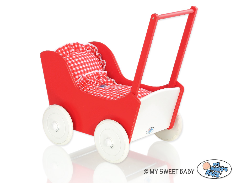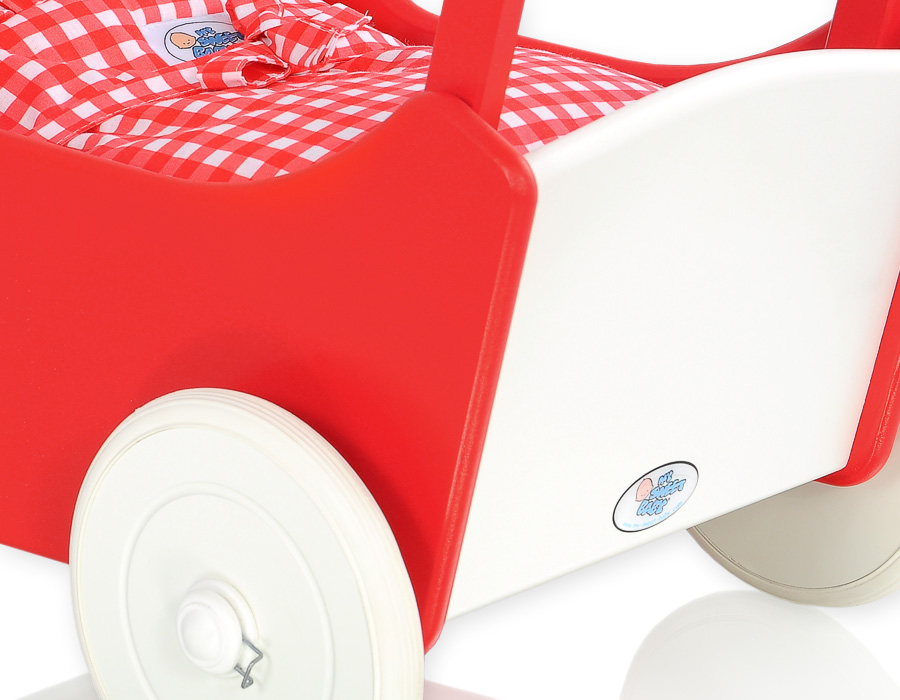 Baby Shop » Baby Toys » Doll prams » Doll prams » Red » Handmade Wooden Stroller Doll Pram Red White Red Check Bedding