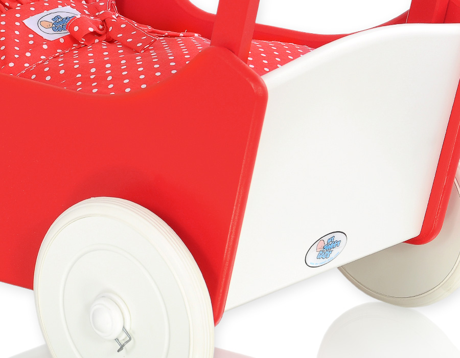Dots White With Red White Red Pram Doll Stroller Wooden Handmade