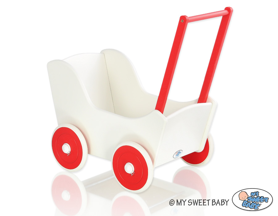 Baby Shop » Baby Toys » Doll prams » Doll prams » Red » Handmade Wooden Stroller Doll Pram White with Red