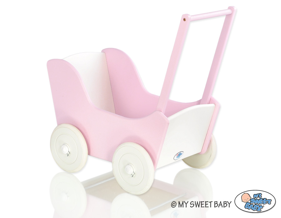 Handmade Wooden Stroller for Dolls Pink WhiteHandmade Wooden Stroller for Dolls Pink White