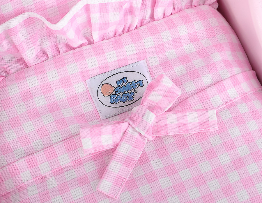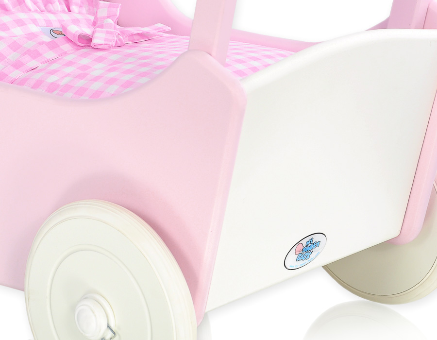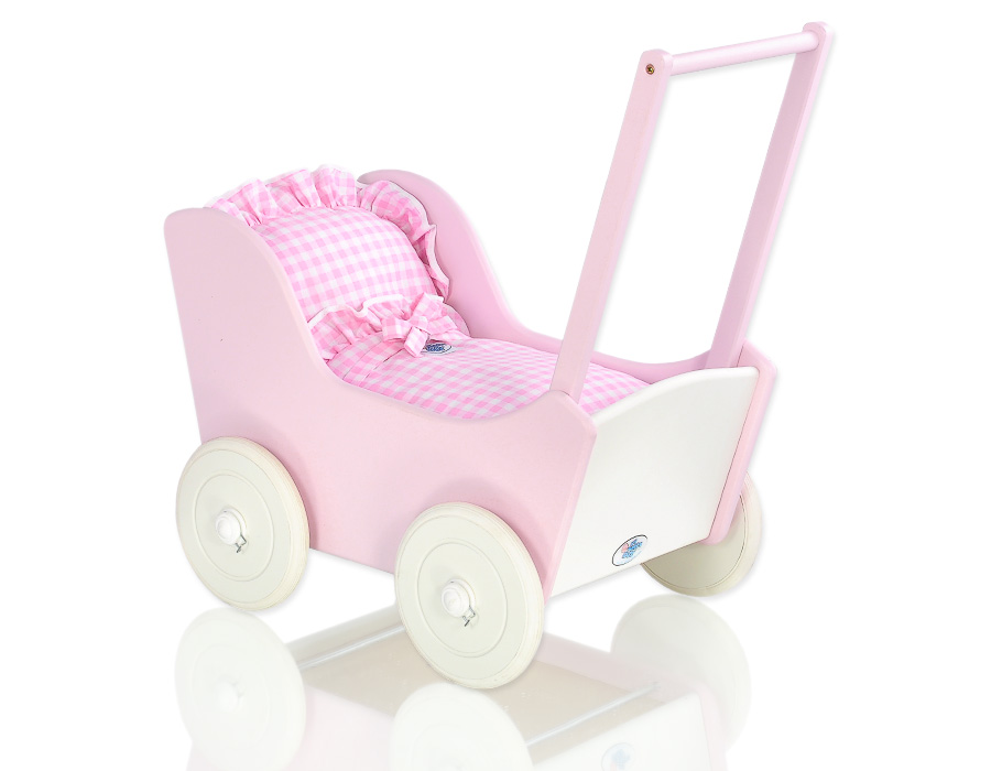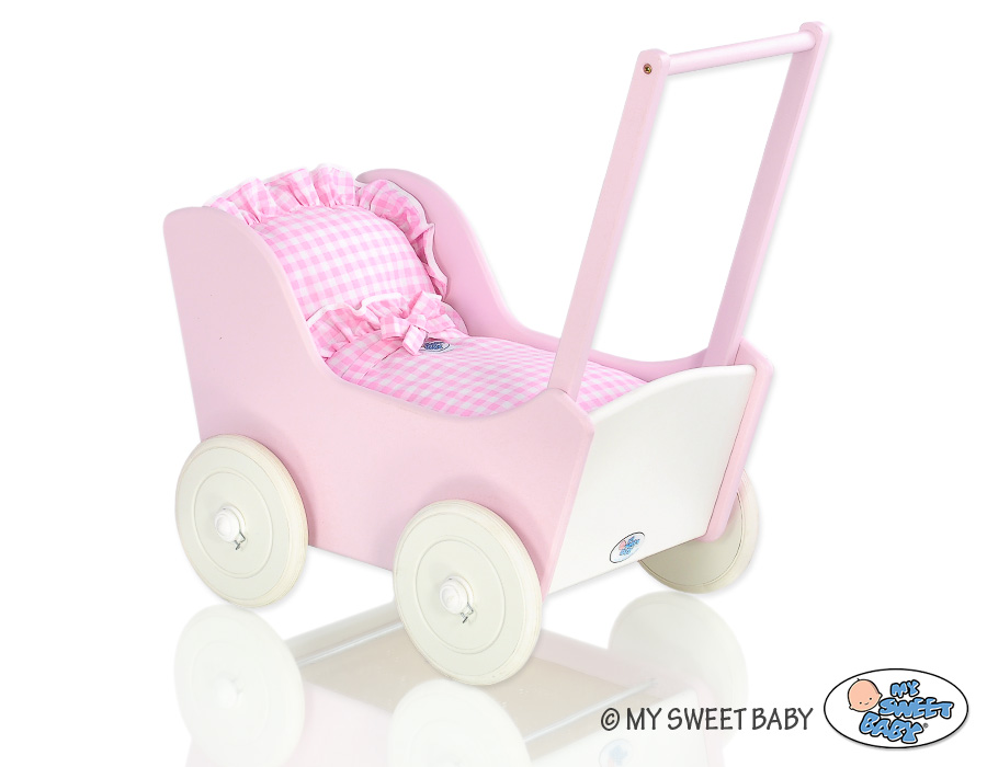 Baby Shop » Baby Toys » Doll prams » Doll prams » Pink » Handmade Wooden Stroller for Dolls Pink White Pink White Checkered Bedding Set
