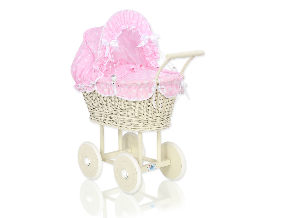 Ivory Wicker Doll Pram Stroller Retro Style Bedding Set White Dots on PinkIvory Wicker Doll Pram Stroller Retro Style Bedding Set White Dots on PinkIvory Wicker Doll Pram Stroller Retro Style Bedding Set White Dots on Pink
