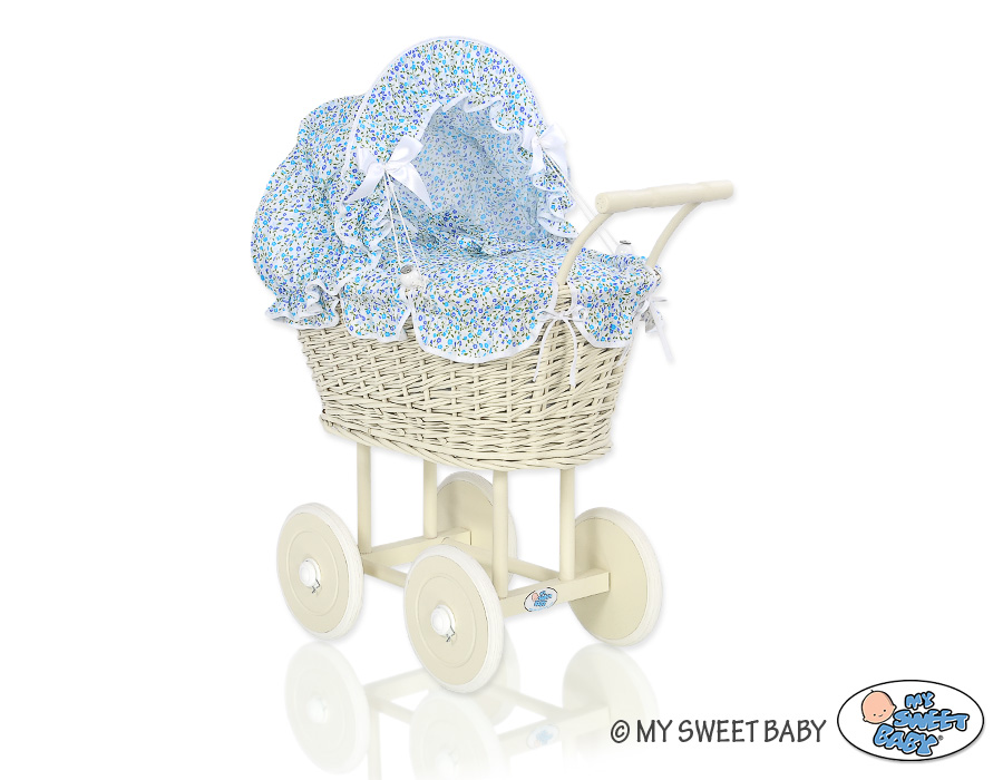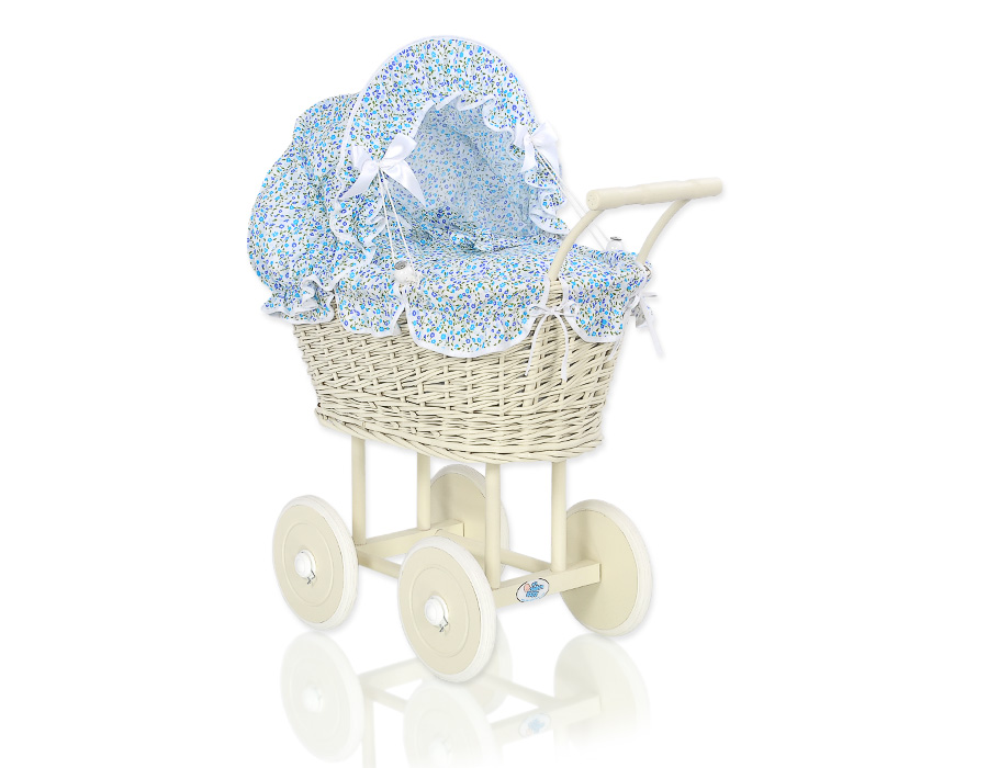Baby Shop » Baby Toys » Doll prams » Wicker Doll prams » Cream Wicker Dolls Prams » Ivory Wicker Doll Pram Stroller Retro Style Blue Flowers Bedding Set