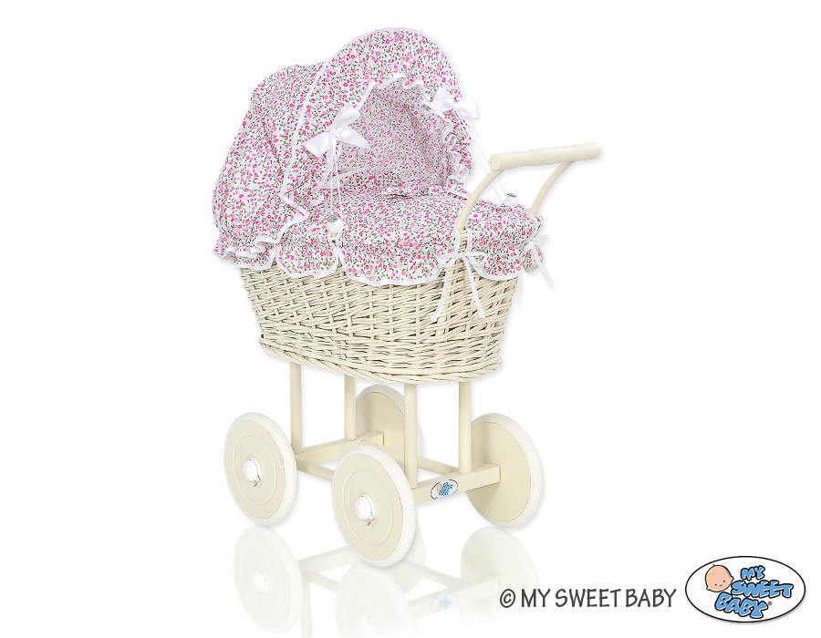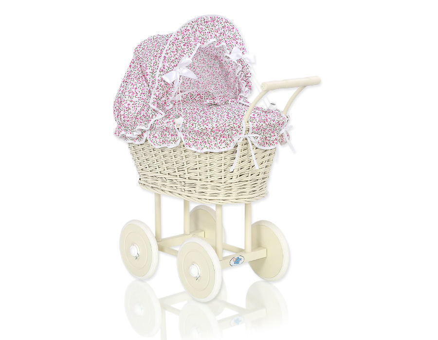 Baby Shop » Baby Toys » Doll prams » Wicker Doll prams » Cream Wicker Dolls Prams » Ivory Wicker Doll Pram Stroller Retro Style Pink Flowers Bedding Set