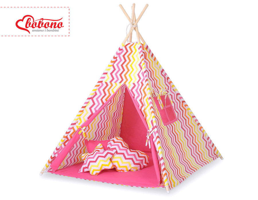 Kids Teepee Tent- Chevron pink-yellow This Teepee is a funtastic childrens play tent - great for imaginative play with friends. To share with friends or to just chill in with some books! Brilliant for a child's bedroom, playroom and can be used outside in the garden.