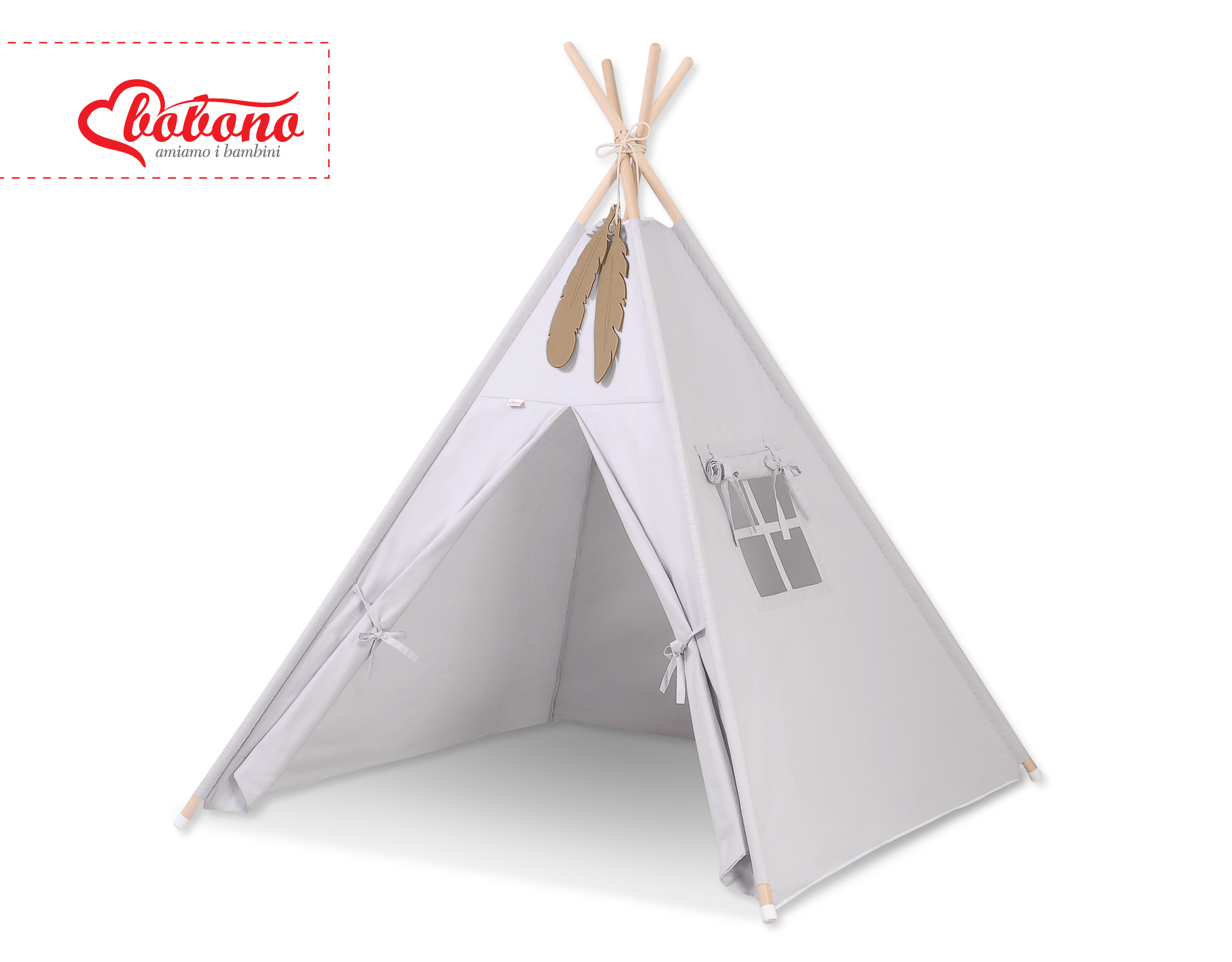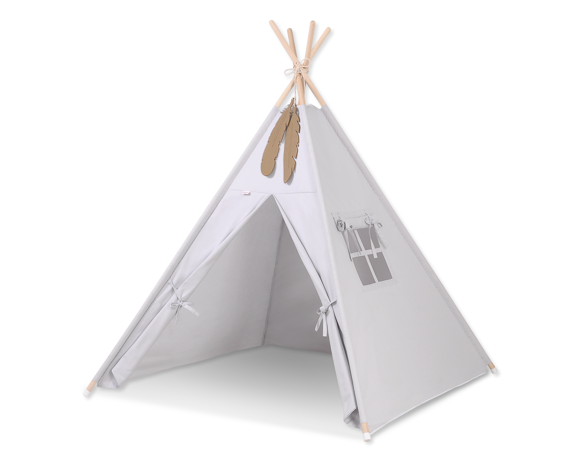 Kids Teepee Tent + decorative feathers- gray This Teepee is a funtastic childrens play tent - great for imaginative play with friends. To share with friends or to just chill in with some books! Brilliant for a child's bedroom, playroom and can be used outside in the garden.