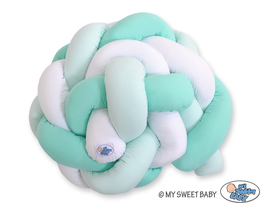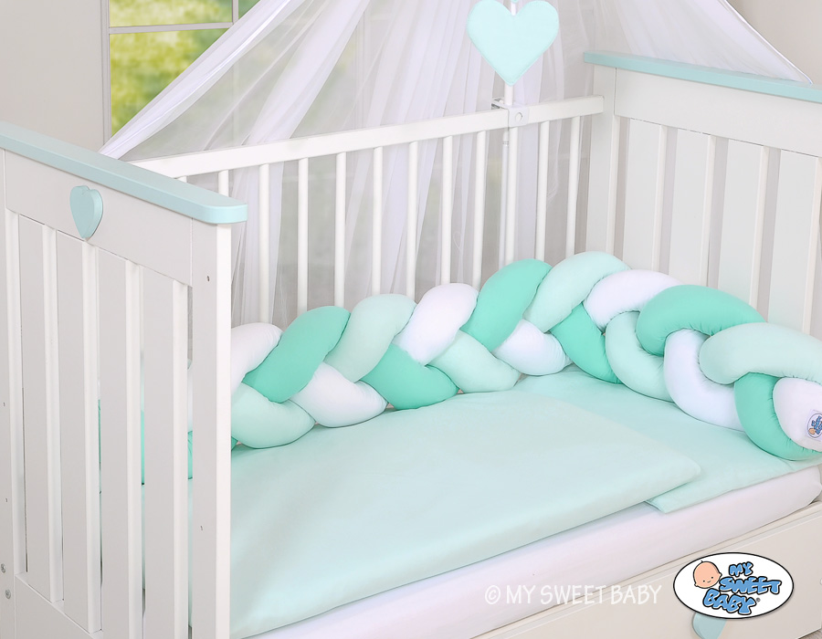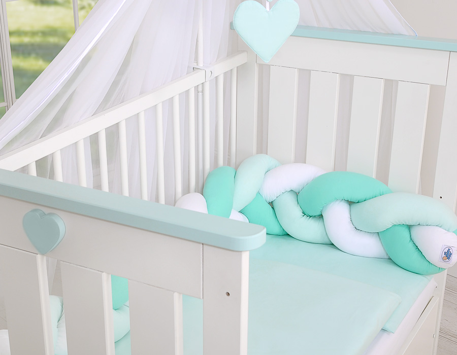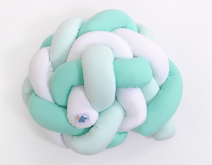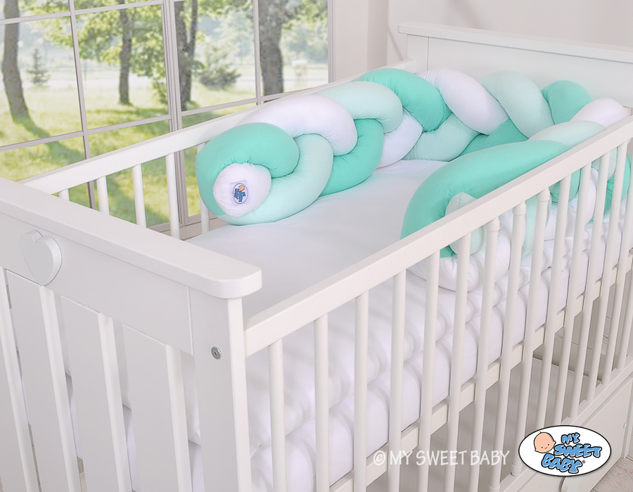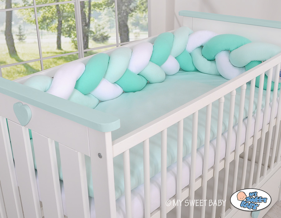 Knot Braided Cushion Bumper for Baby Bed Crib- white-mint Beautiful, very soft braided cot bumper made from 100% cotton. Can be fixed to the bars.