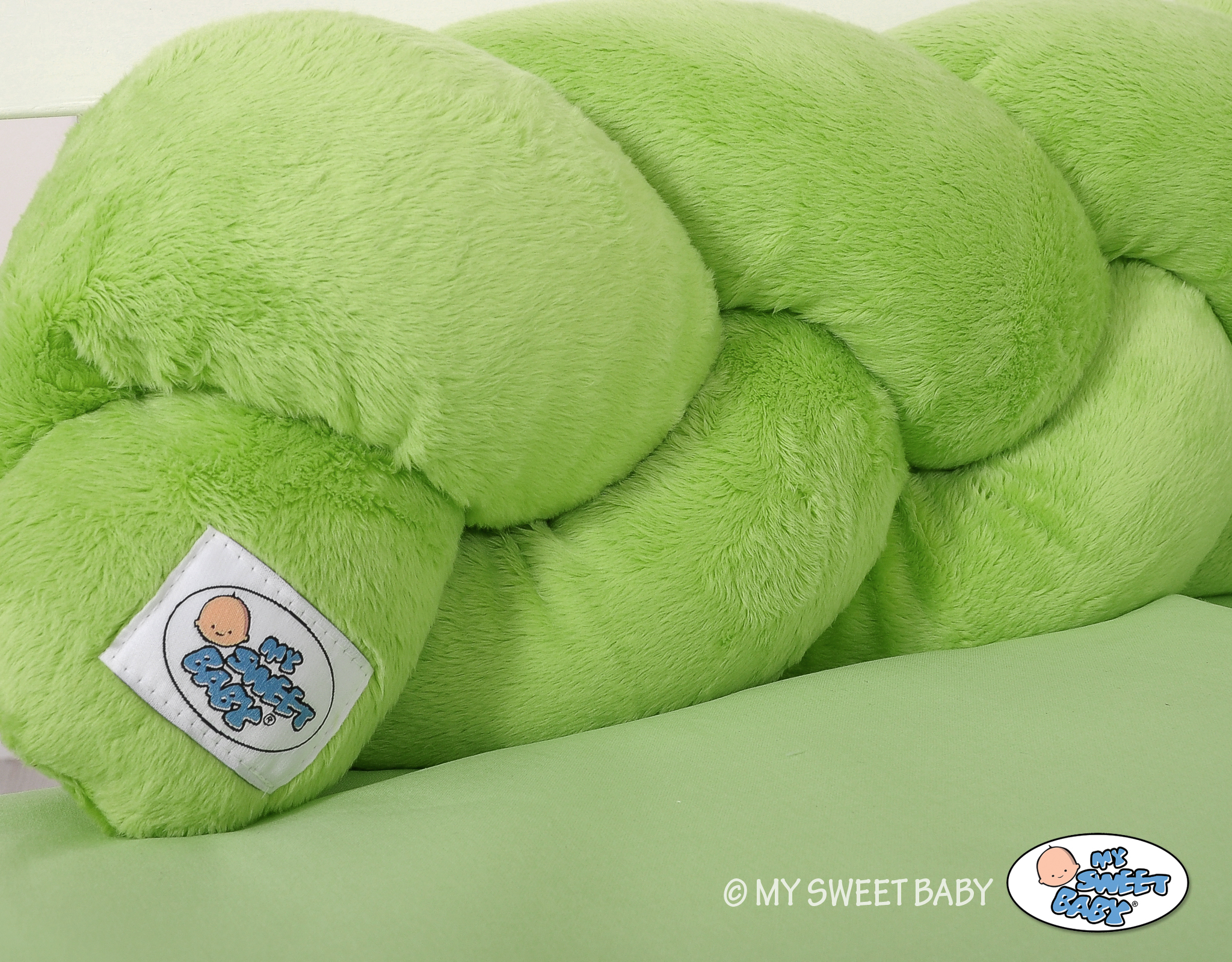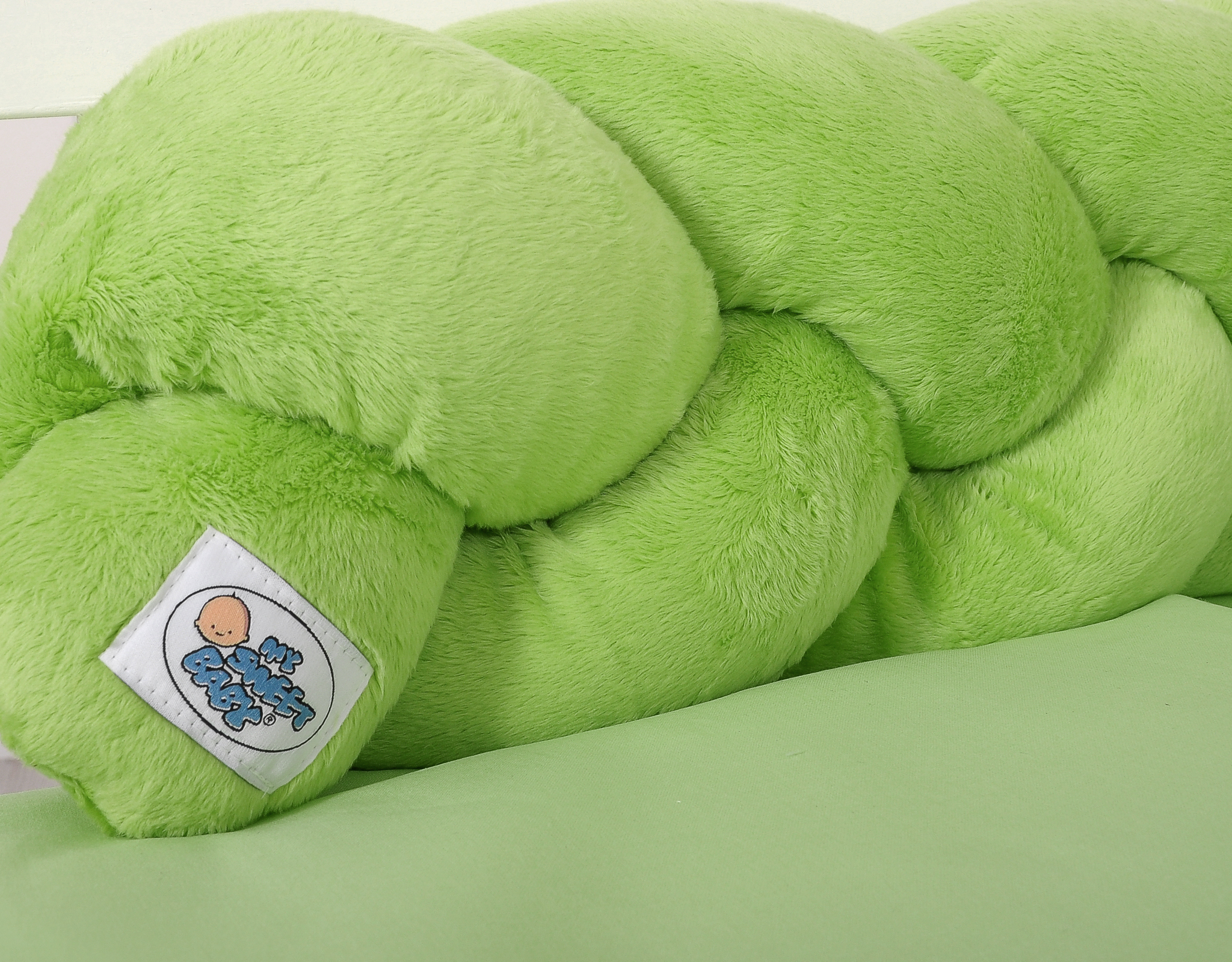 Knot bumper minky 180cm- green Beautiful, very soft braided cot bumper made of soft minky fleece. Can be fixed to the bars.