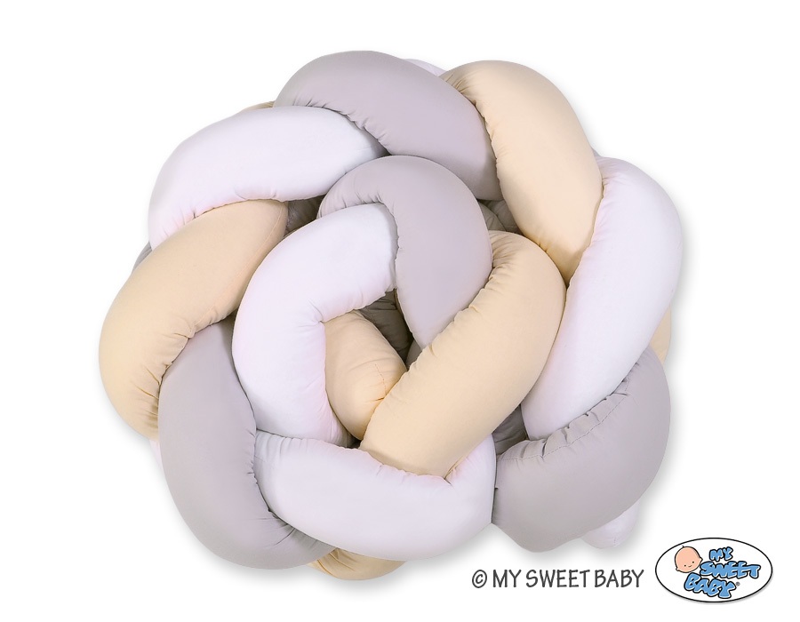 Knot Pillow Baby bumper- white-gray-beige Beautiful, very soft braided cot bumper made from 100% cotton. Can be fixed to the bars.