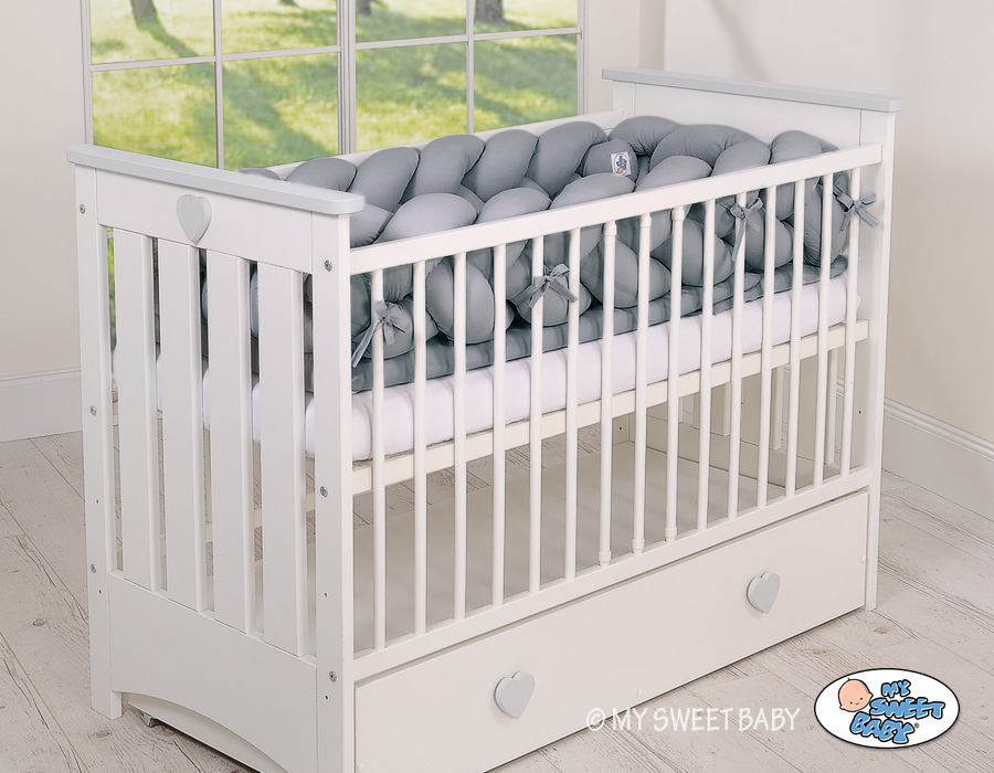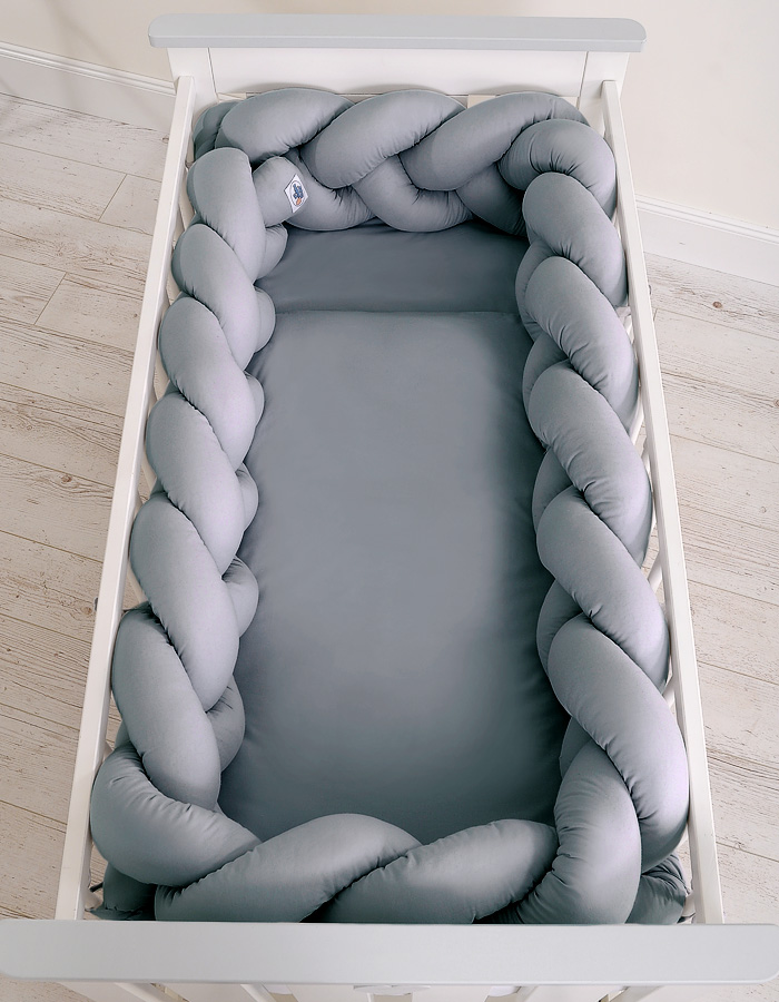Beautiful, very soft braided cot bumper made from 100% cotton. Can be fixed to the bars.