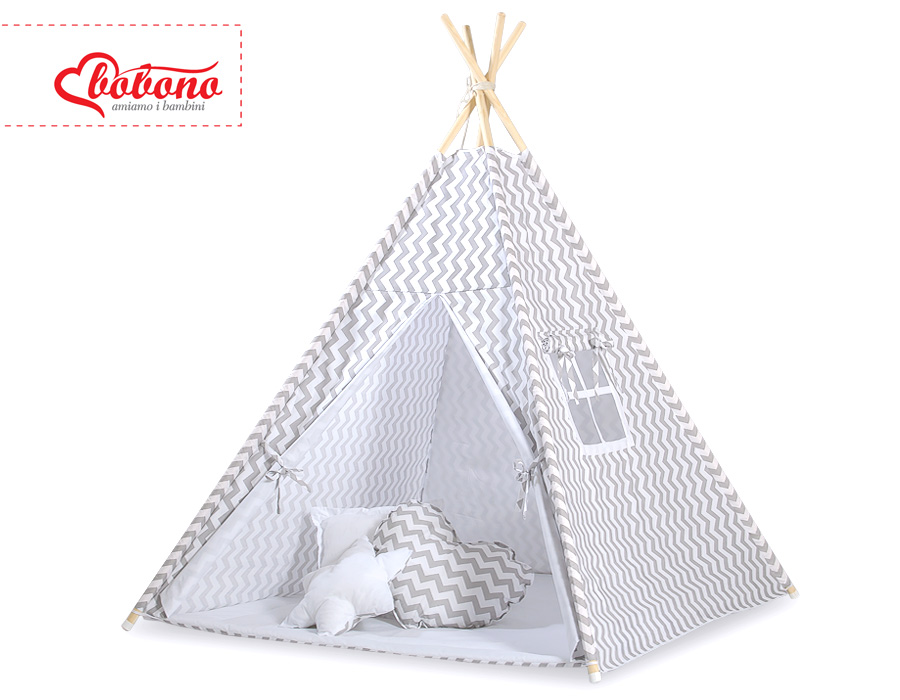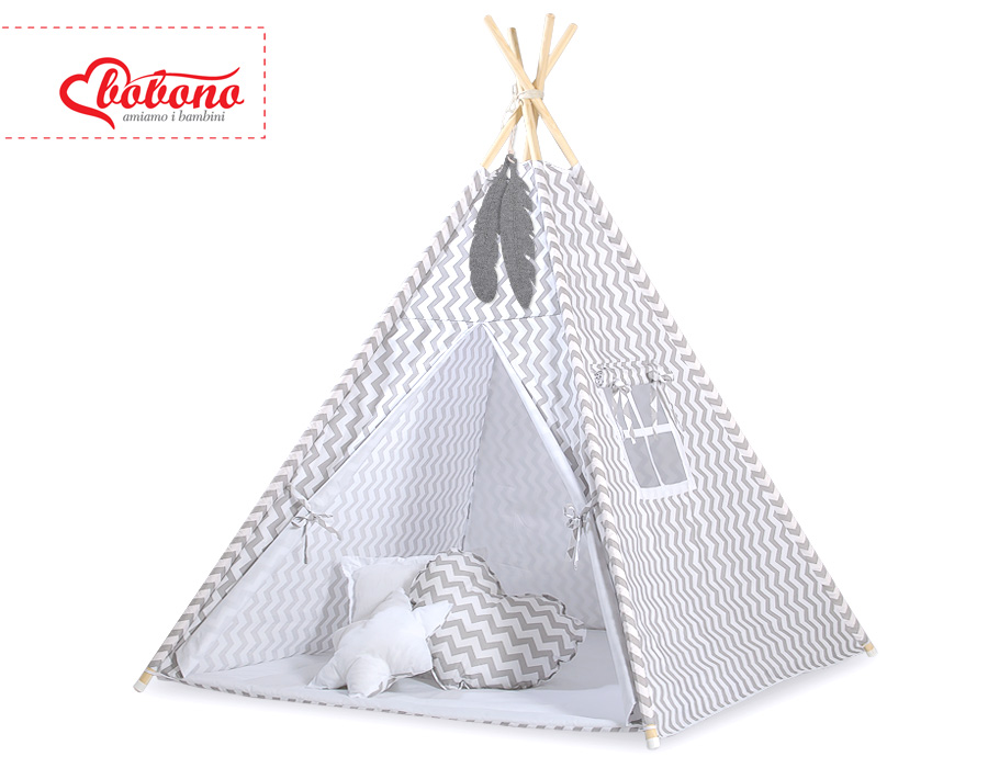 MEGA SET: Kids Teepee tent + playmat + pillows + decorative feathers FREE!- Chevron Gray This Teepee is a funtastic childrens play tent - great for imaginative play with friends. To share with friends or to just chill in with some books! Brilliant for a child's bedroom, playroom and can be used outside in the garden.