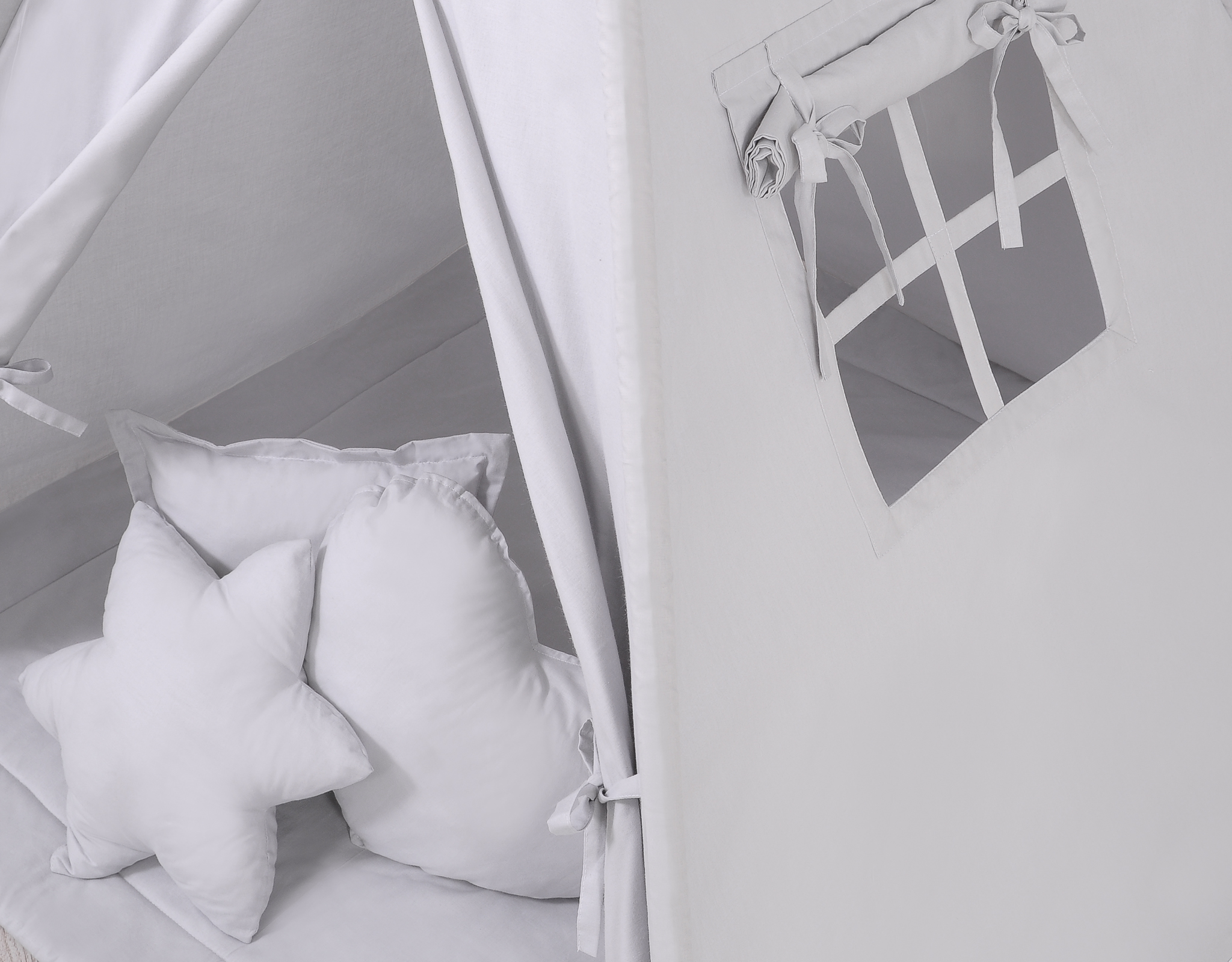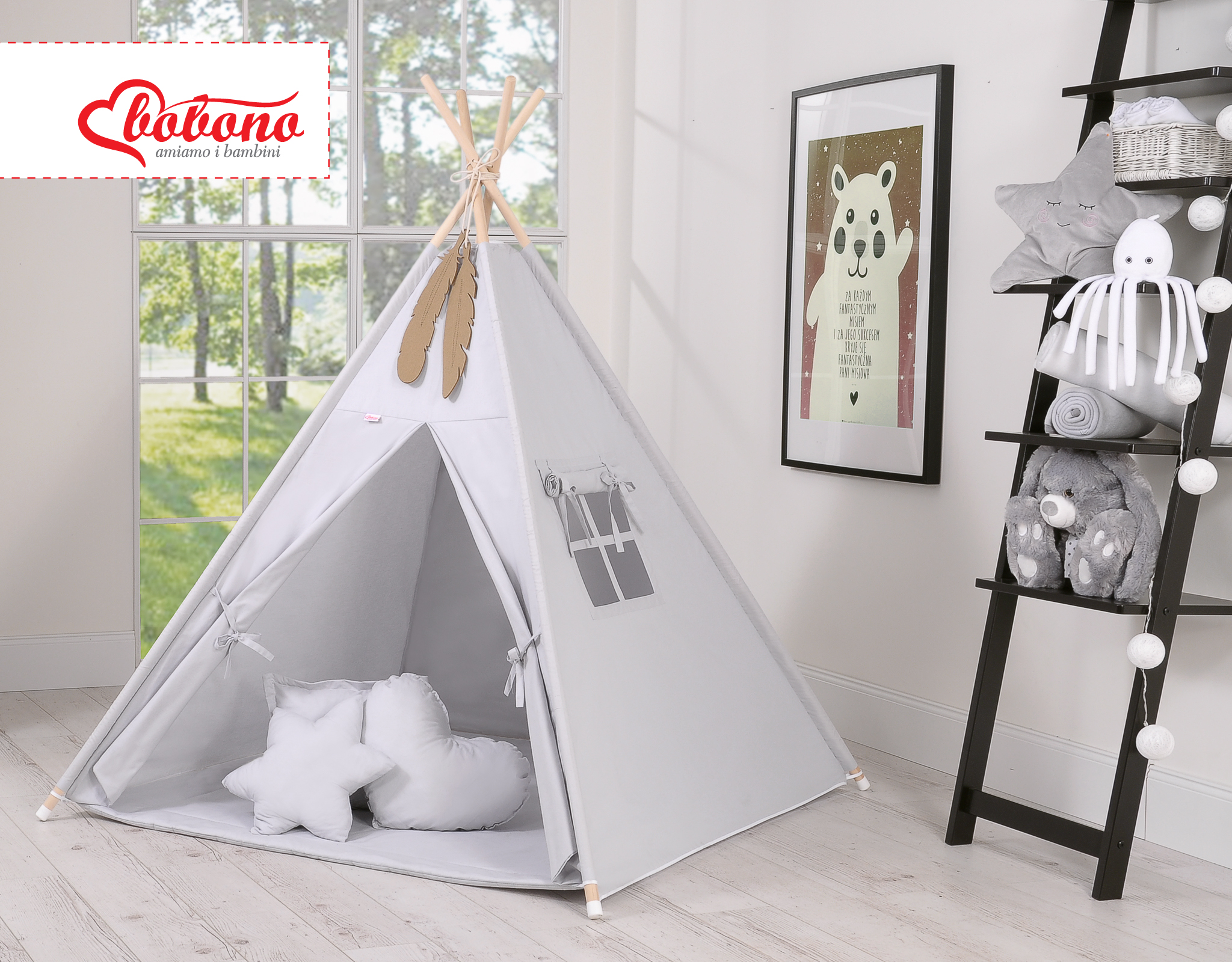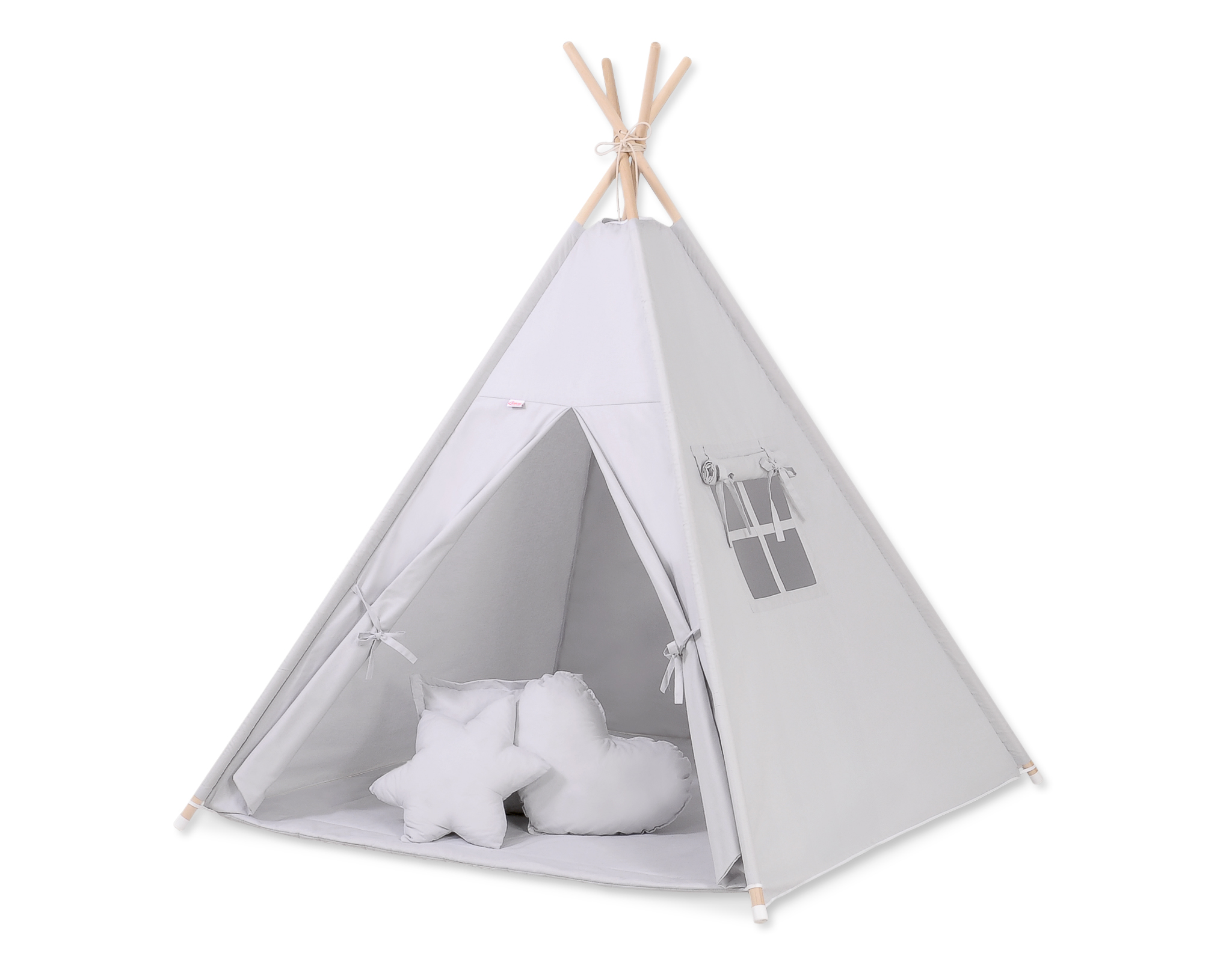MEGA SET: Kids Teepee tent + playmat + pillows + decorative feathers FREE! - gray This Teepee is a funtastic childrens play tent - great for imaginative play with friends. To share with friends or to just chill in with some books! Brilliant for a child's bedroom, playroom and can be used outside in the garden.