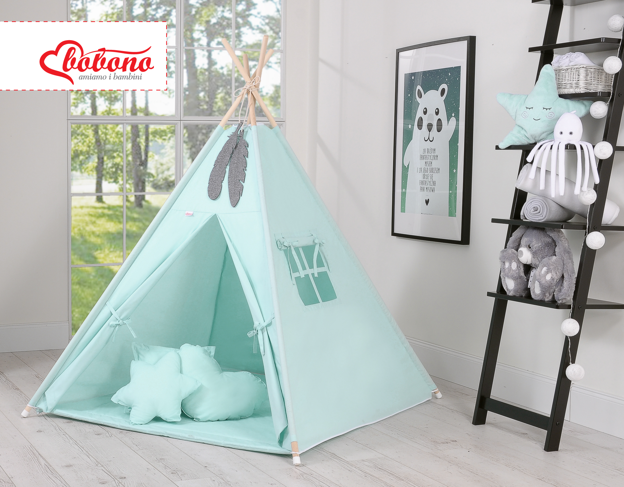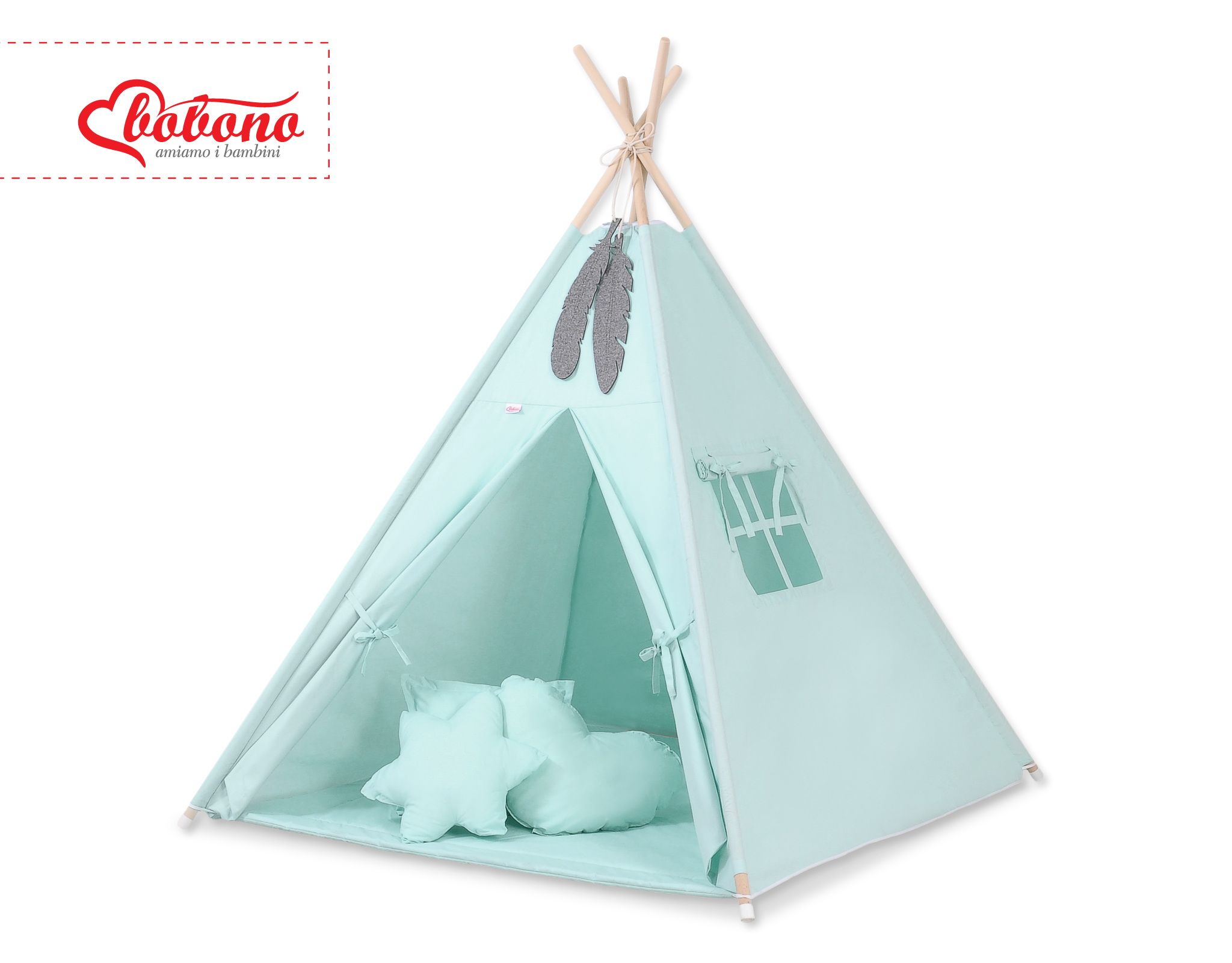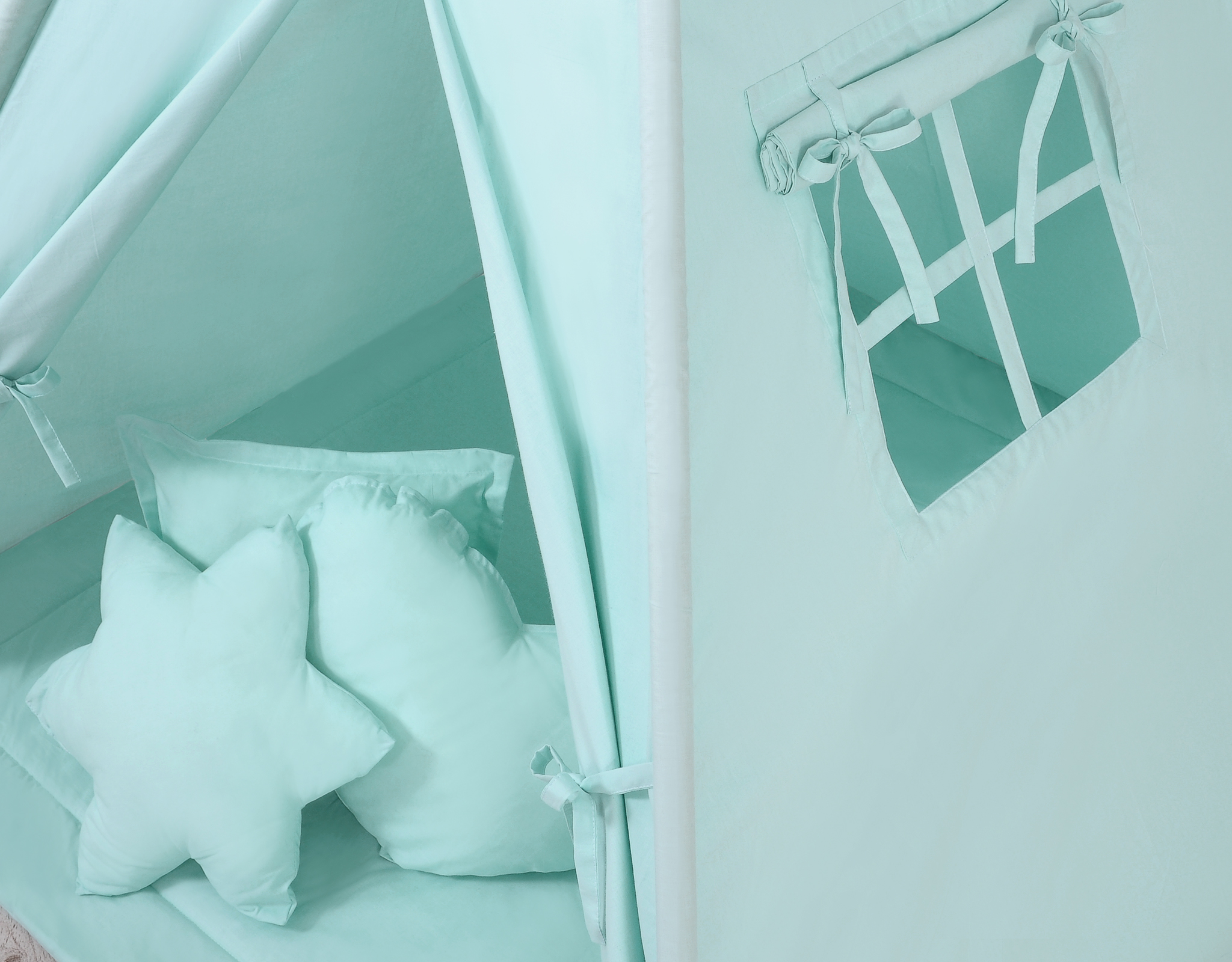 MEGA SET: Kids Teepee tent + playmat + pillows + decorative feathers FREE!- mint This Teepee is a funtastic childrens play tent - great for imaginative play with friends. To share with friends or to just chill in with some books! Brilliant for a child's bedroom, playroom and can be used outside in the garden.