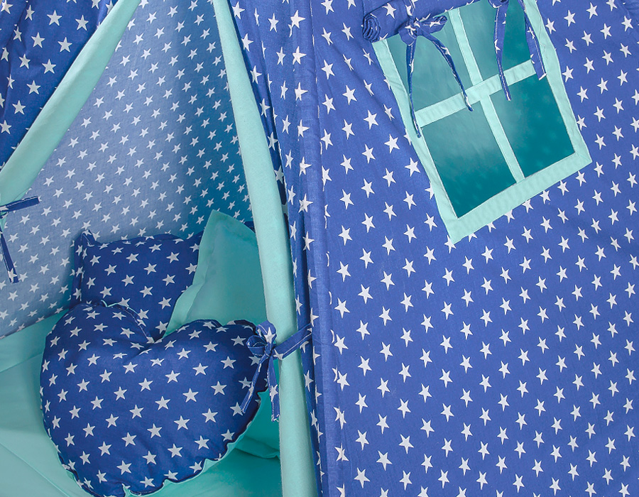 MEGA SET: Kids Teepee tent + playmat + pillows + decorative feathers FREE!- Navy blue stars This Teepee is a funtastic childrens play tent - great for imaginative play with friends. To share with friends or to just chill in with some books! Brilliant for a child's bedroom, playroom and can be used outside in the garden.
