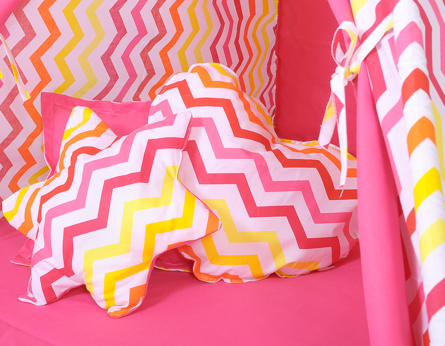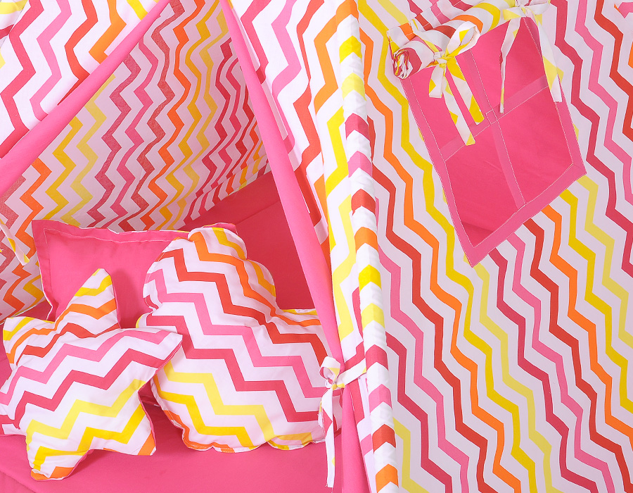 Pink-yellow Chevron Tent+playmat+pillows Teepee Set: Mega