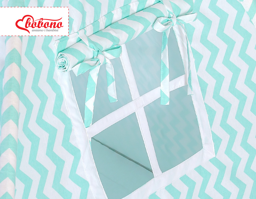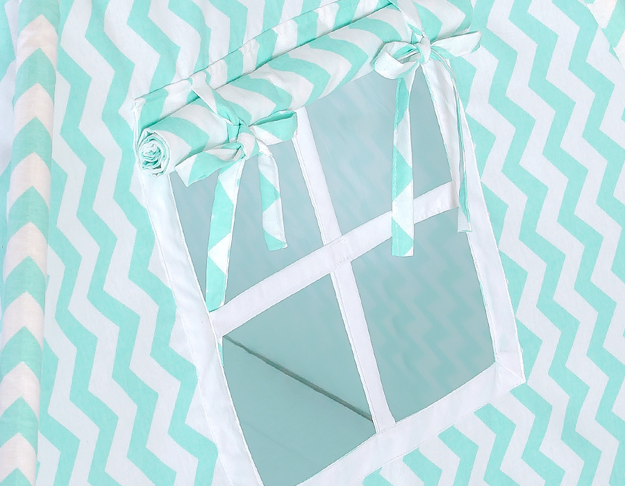 MINI Set: Teepee tent for kids + play mat + decorative feathers- Chevron mint This Teepee is a funtastic childrens play tent - great for imaginative play with friends. To share with friends or to just chill in with some books! Brilliant for a child's bedroom, playroom and can be used outside in the garden.