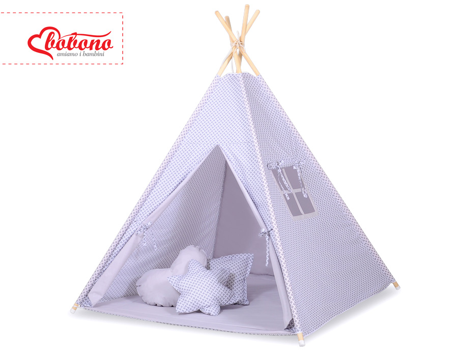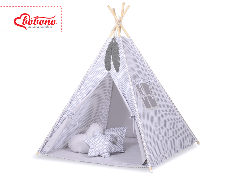MINI Set: Teepee tent for kids + play mat + decorative feathers- Gray flowers This Teepee is a funtastic childrens play tent - great for imaginative play with friends. To share with friends or to just chill in with some books! Brilliant for a child's bedroom, playroom and can be used outside in the garden.