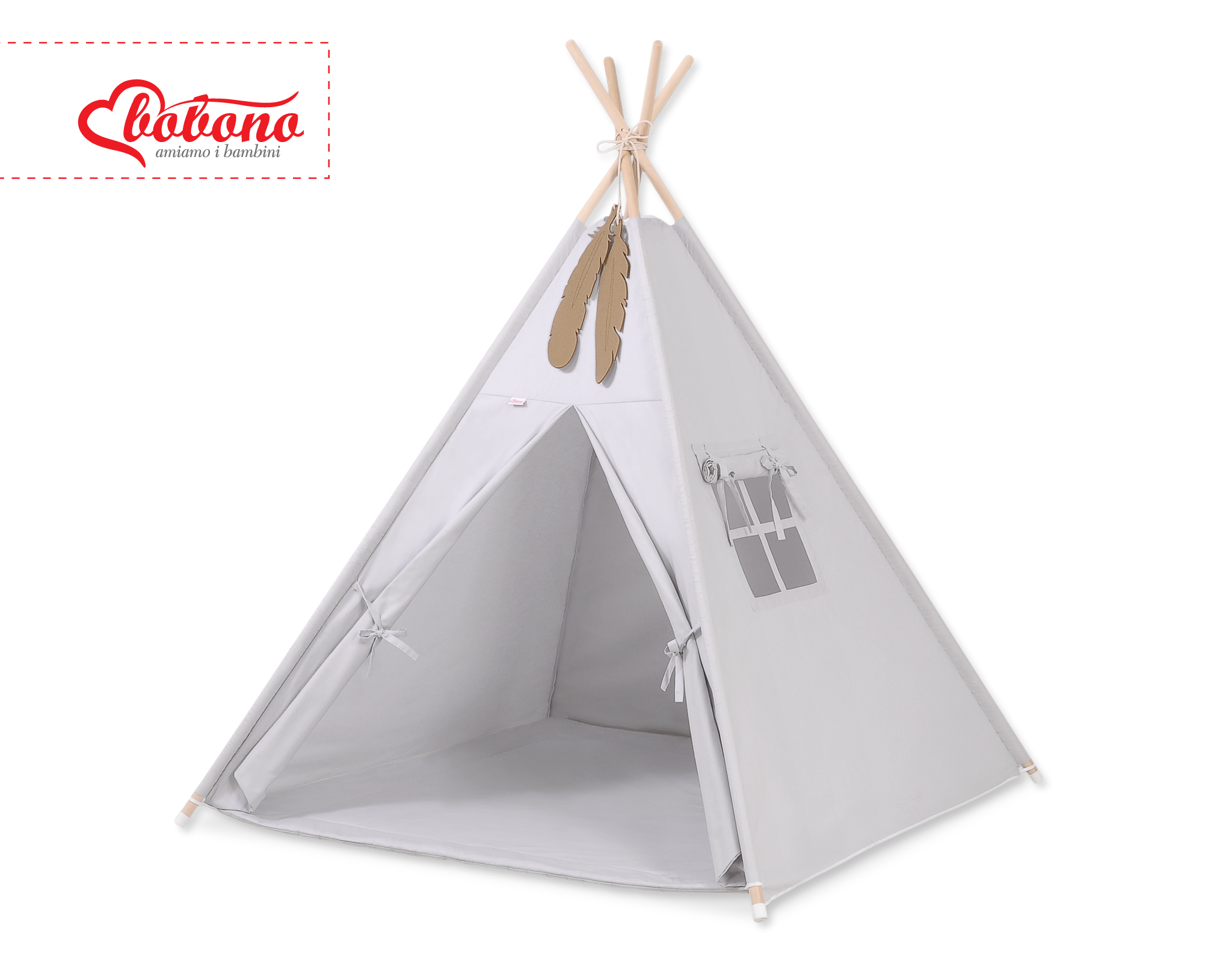 MINI Set: Teepee tent for kids + play mat+ decorative feathers -gray This Teepee is a funtastic childrens play tent - great for imaginative play with friends. To share with friends or to just chill in with some books! Brilliant for a child's bedroom, playroom and can be used outside in the garden.