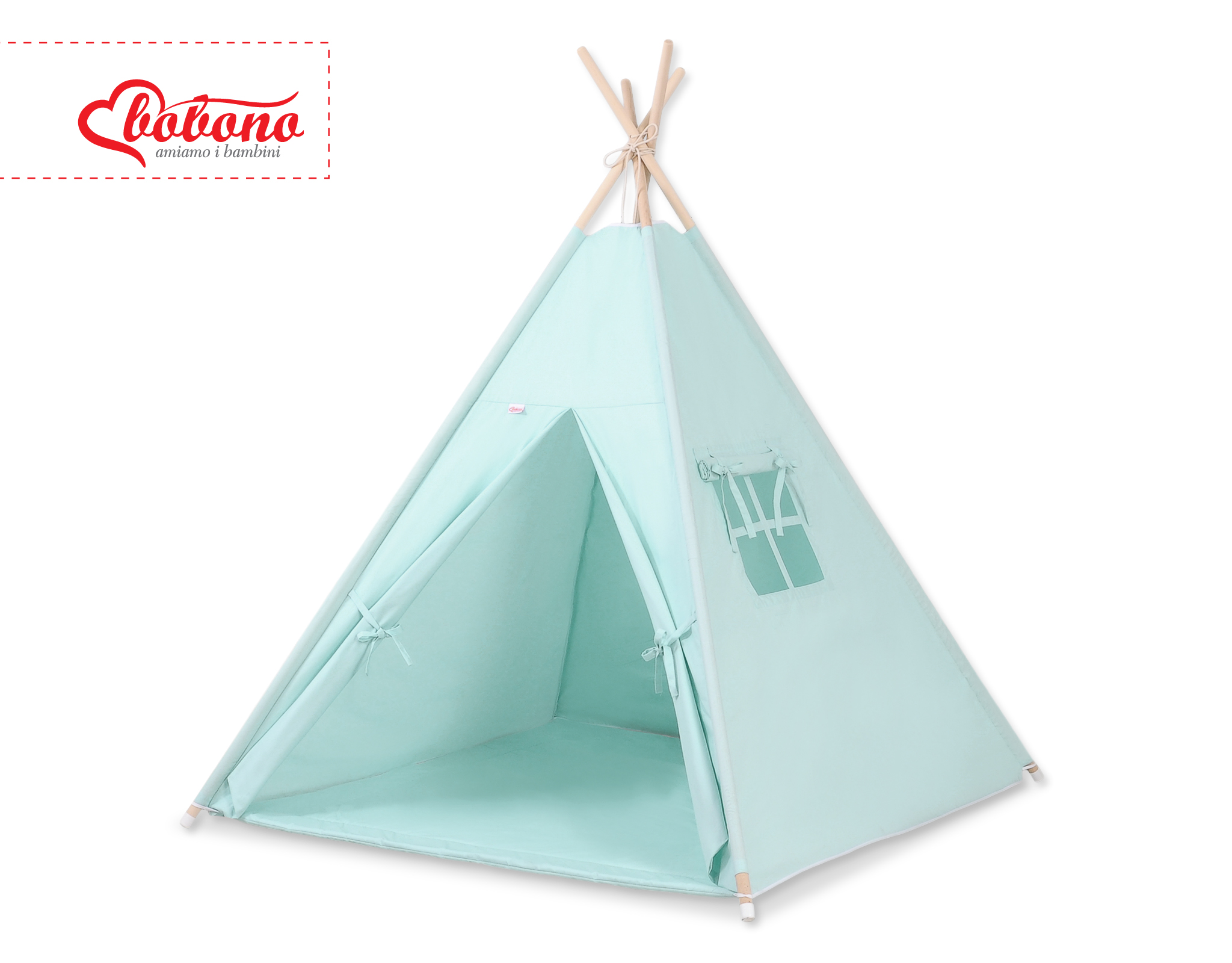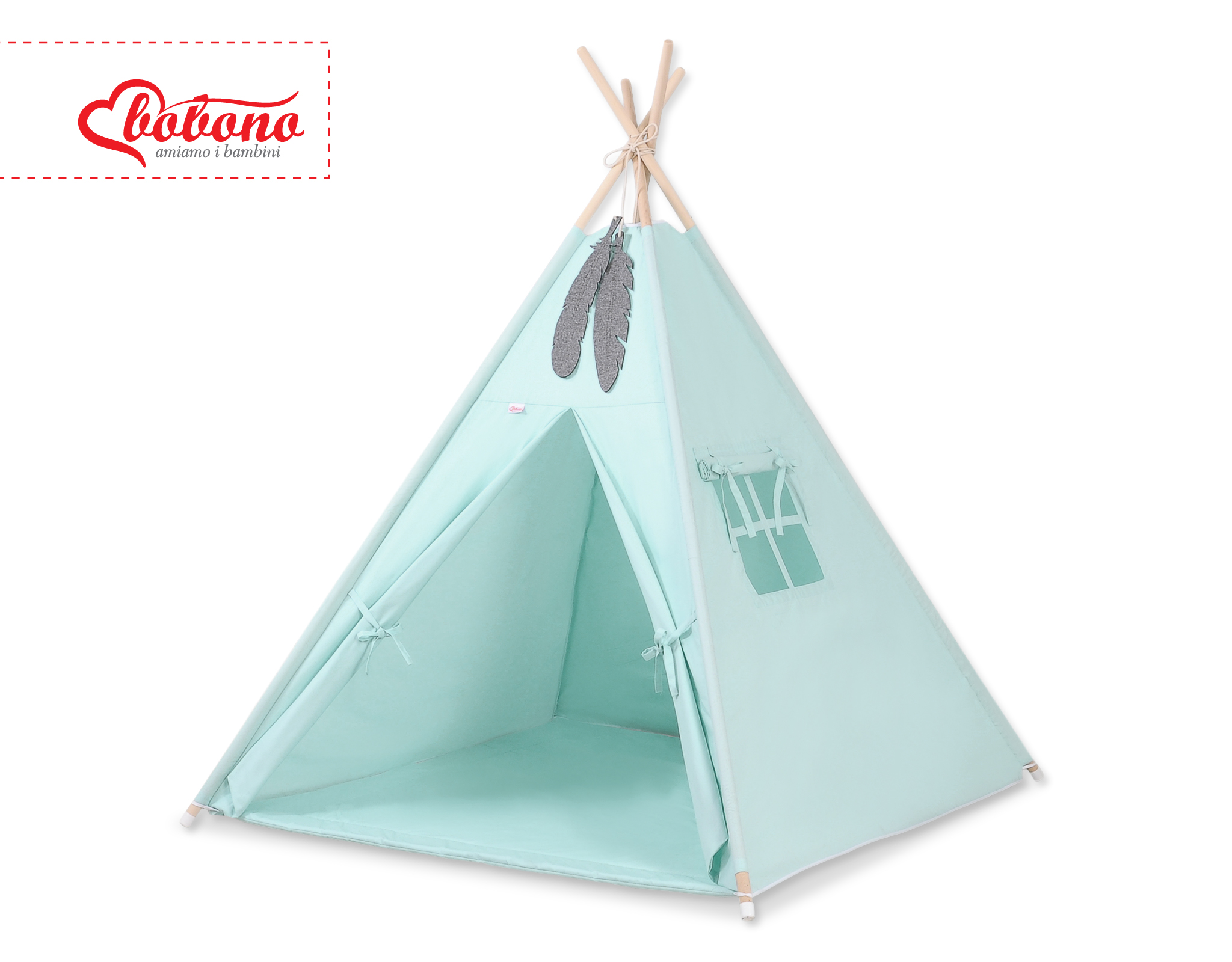MINI Set: Teepee tent for kids + play mat+ decorative feathers - mint This Teepee is a funtastic childrens play tent - great for imaginative play with friends. To share with friends or to just chill in with some books! Brilliant for a child's bedroom, playroom and can be used outside in the garden.