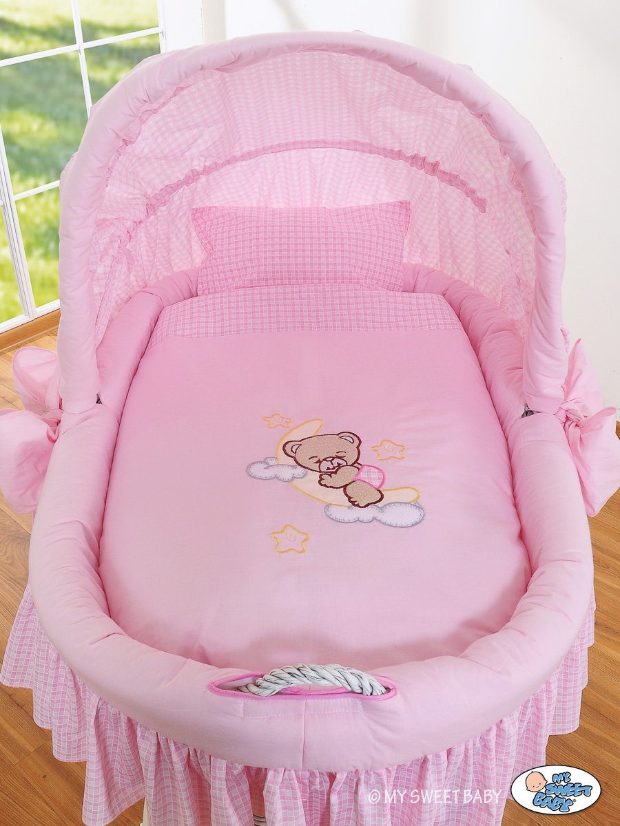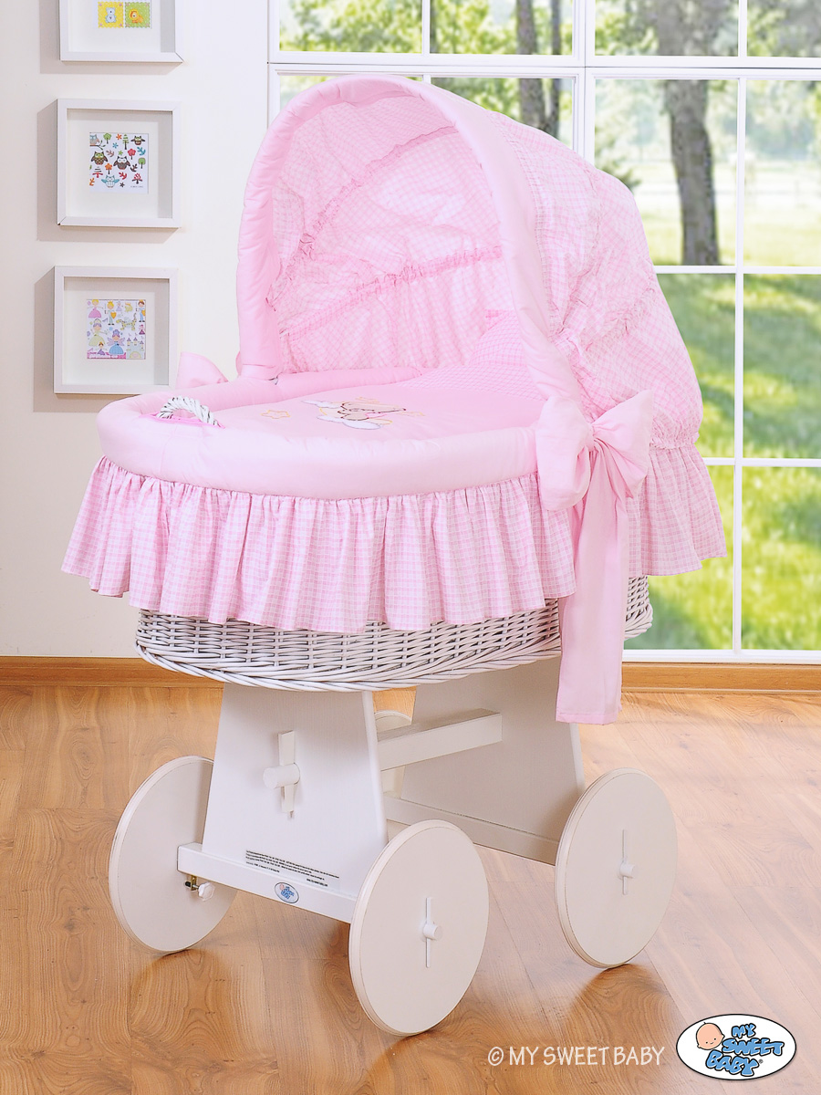 Moses Basket on Wheels - My Sweet Baby Wicker crib with hood- Good night pink