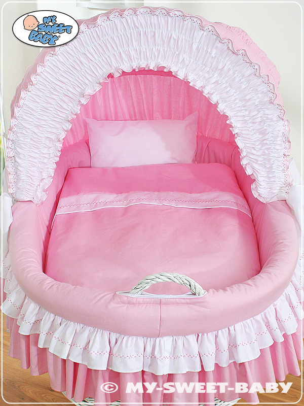 Moses Basket on Wheels - Wicker crib with hood- Bellamy pink