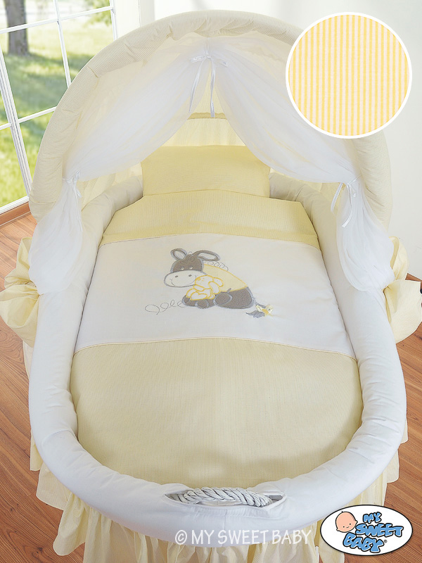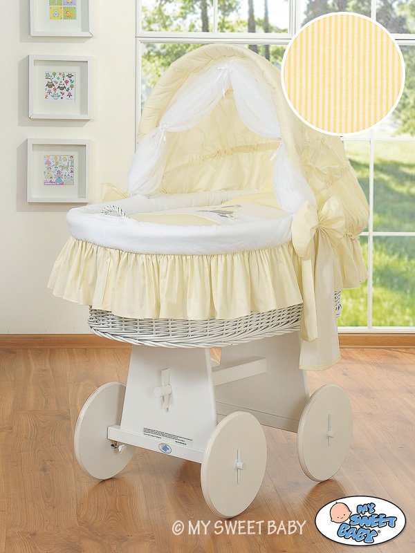 Moses Basket on Wheels - Wicker crib with hood- Donkey Luca cream