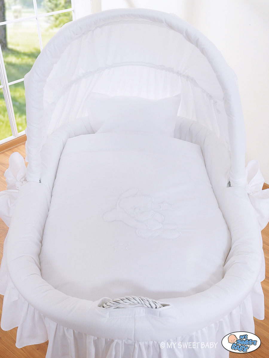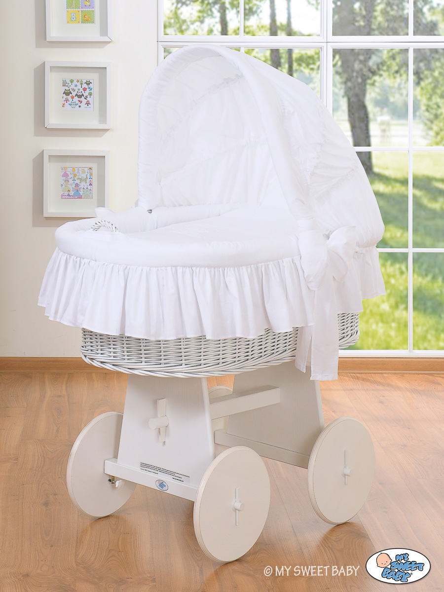 Moses Basket on Wheels - Wicker crib with hood- Good night white