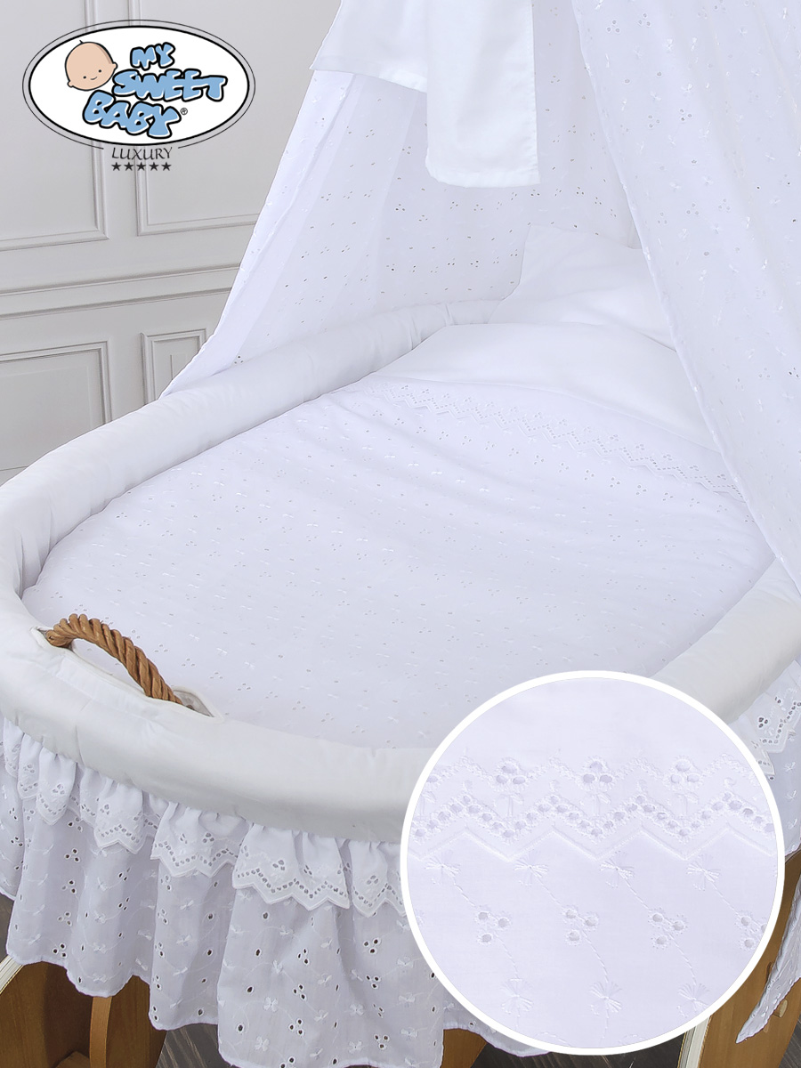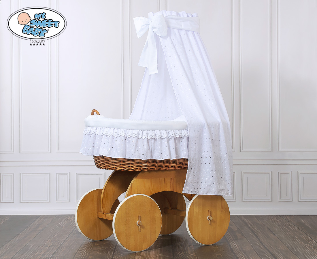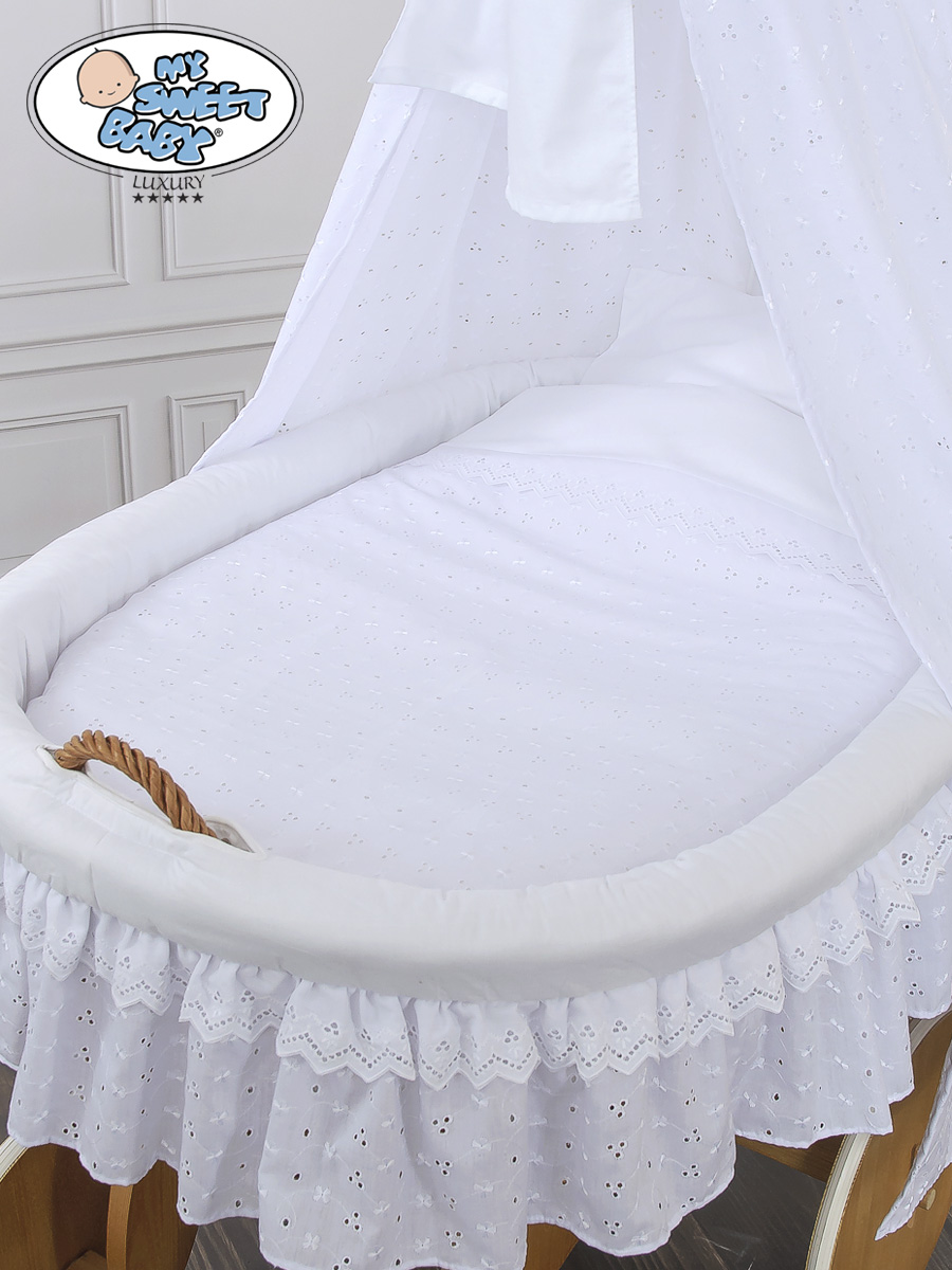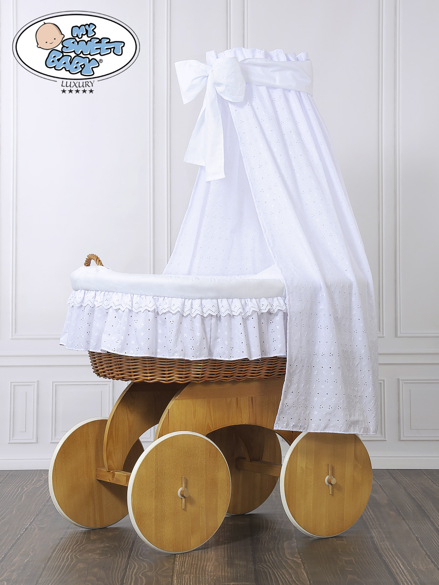 Moses Basket Wicker drape crib Charlotte no 70202White Bedding Set