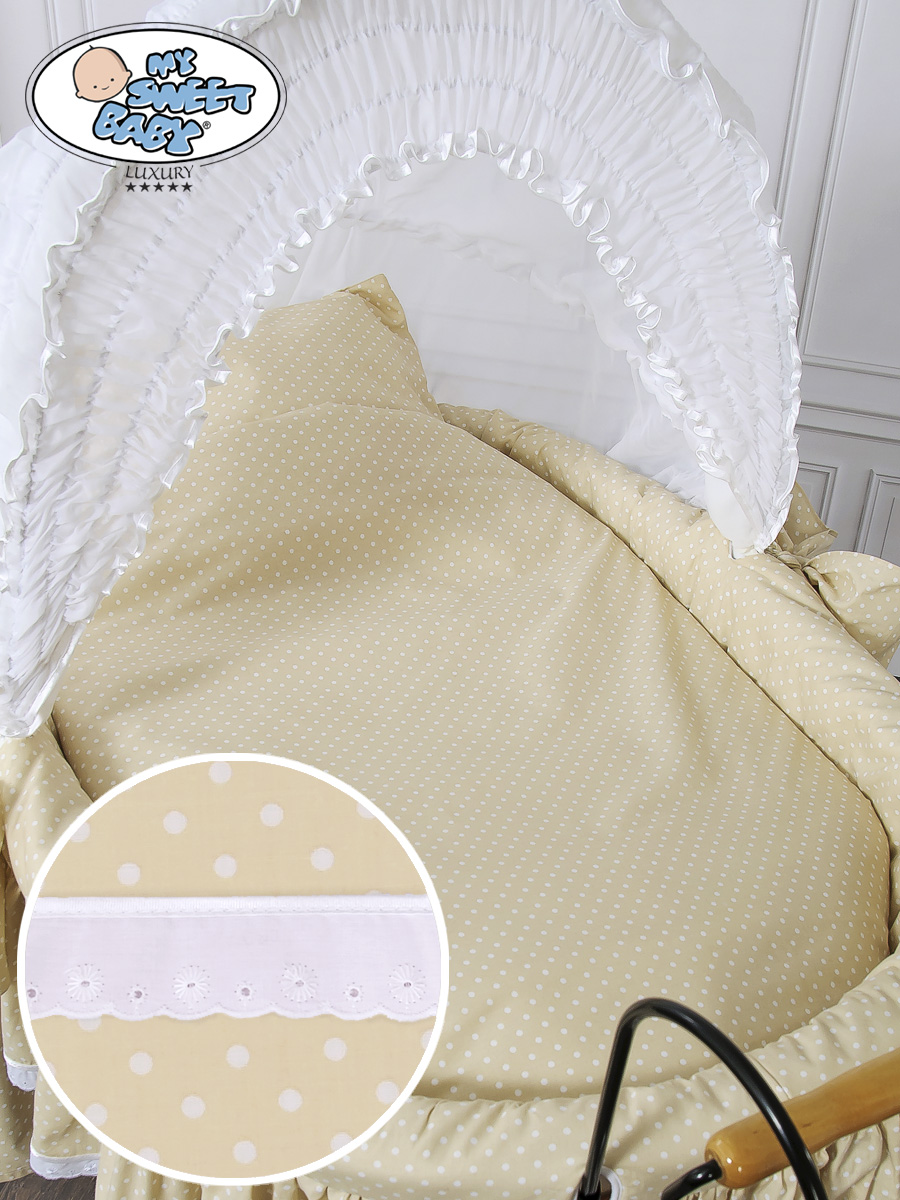 → basket cover with sewn-in soft filling, hood cover, pillow and cover (filling: outer fabric 100% Cotton, padding: 100% Polyester) duvet cover and quilt cover, all from 100 % cotton fabrics