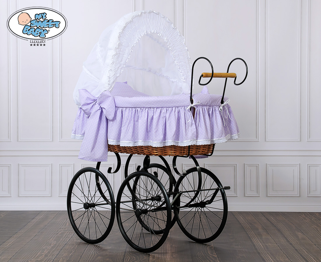 Moses Basket/Retro wicker crib Christine - White - lilac with lace