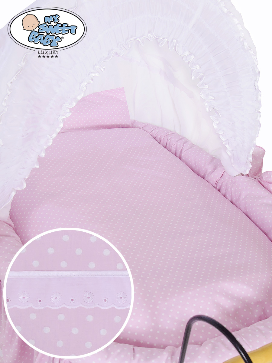 → basket cover with sewn-in soft filling, hood cover, pillow and cover (filling: outer fabric 100% Cotton, padding: 100% Polyester) duvet cover and quilt cover, all from 100 % cotton fabrics