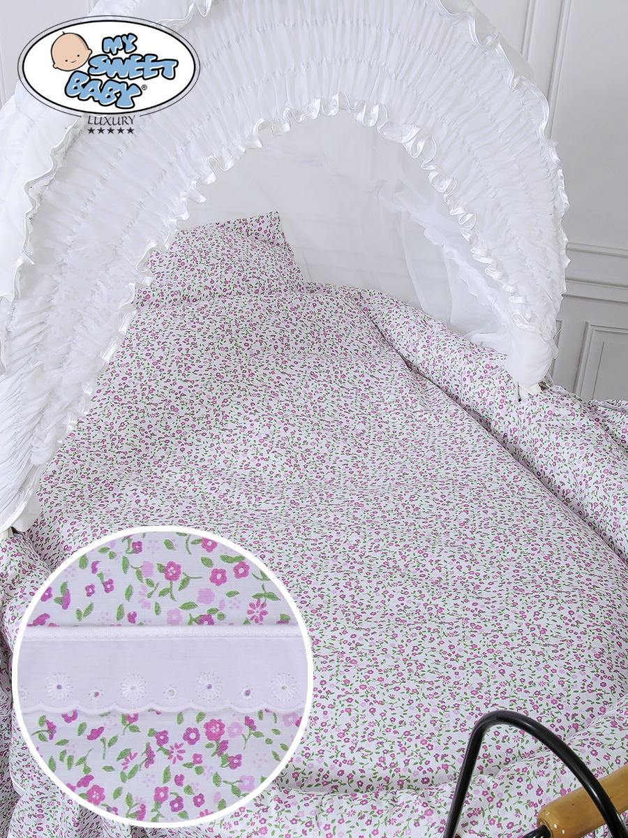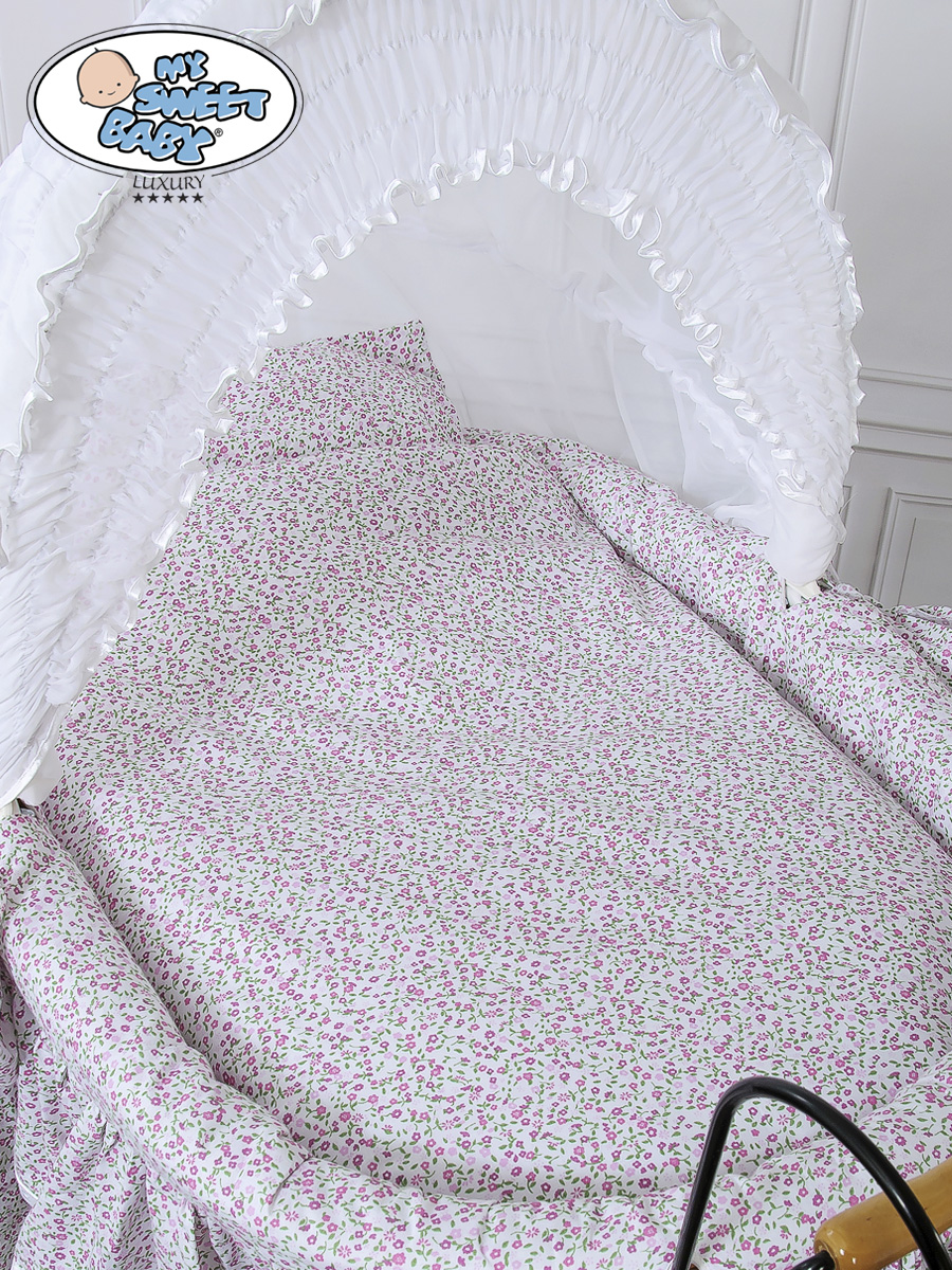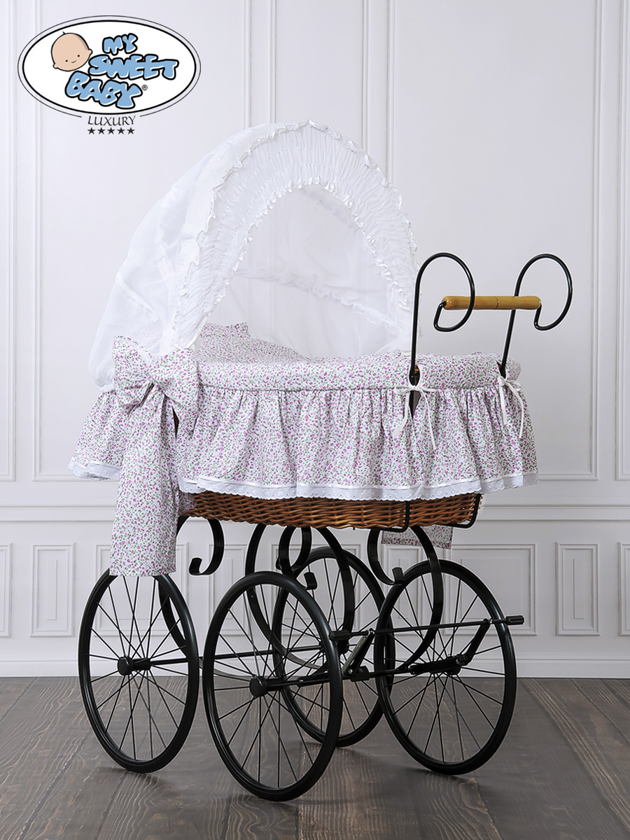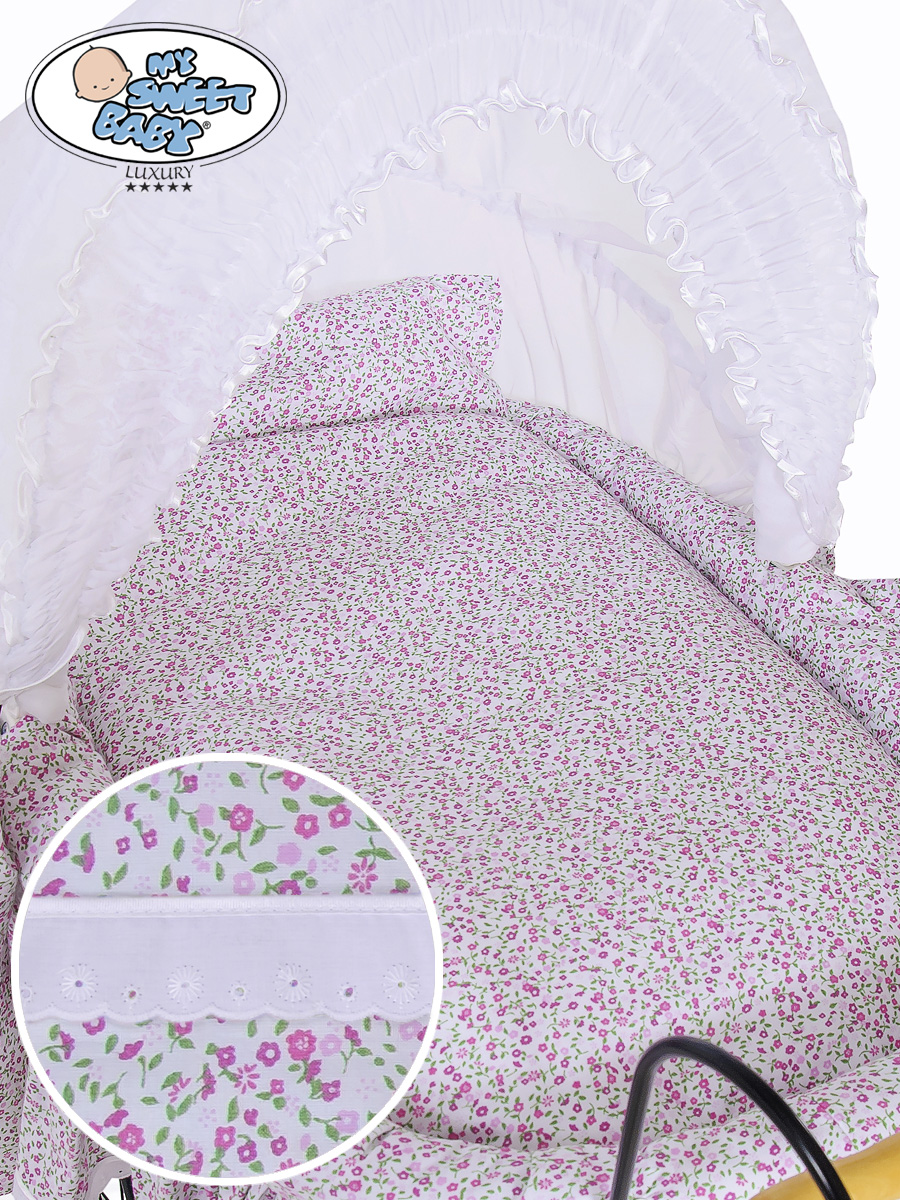 Moses Basket/Retro wicker crib Jasmine - White - pink with lace