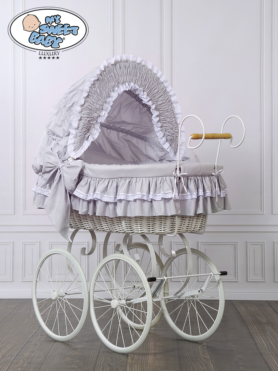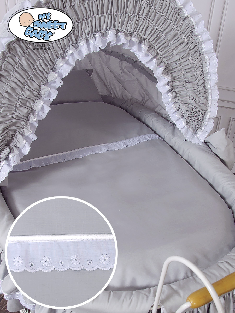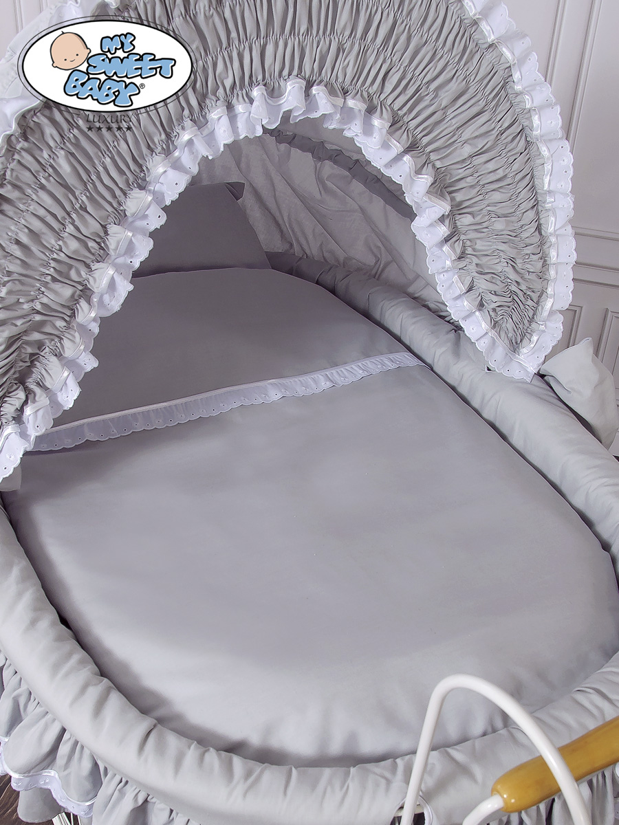→ basket cover with sewn-in soft filling, hood cover, pillow and cover (filling: outer fabric 100% Cotton, padding: 100% Polyester) duvet cover and quilt cover, all from 100 % cotton fabrics