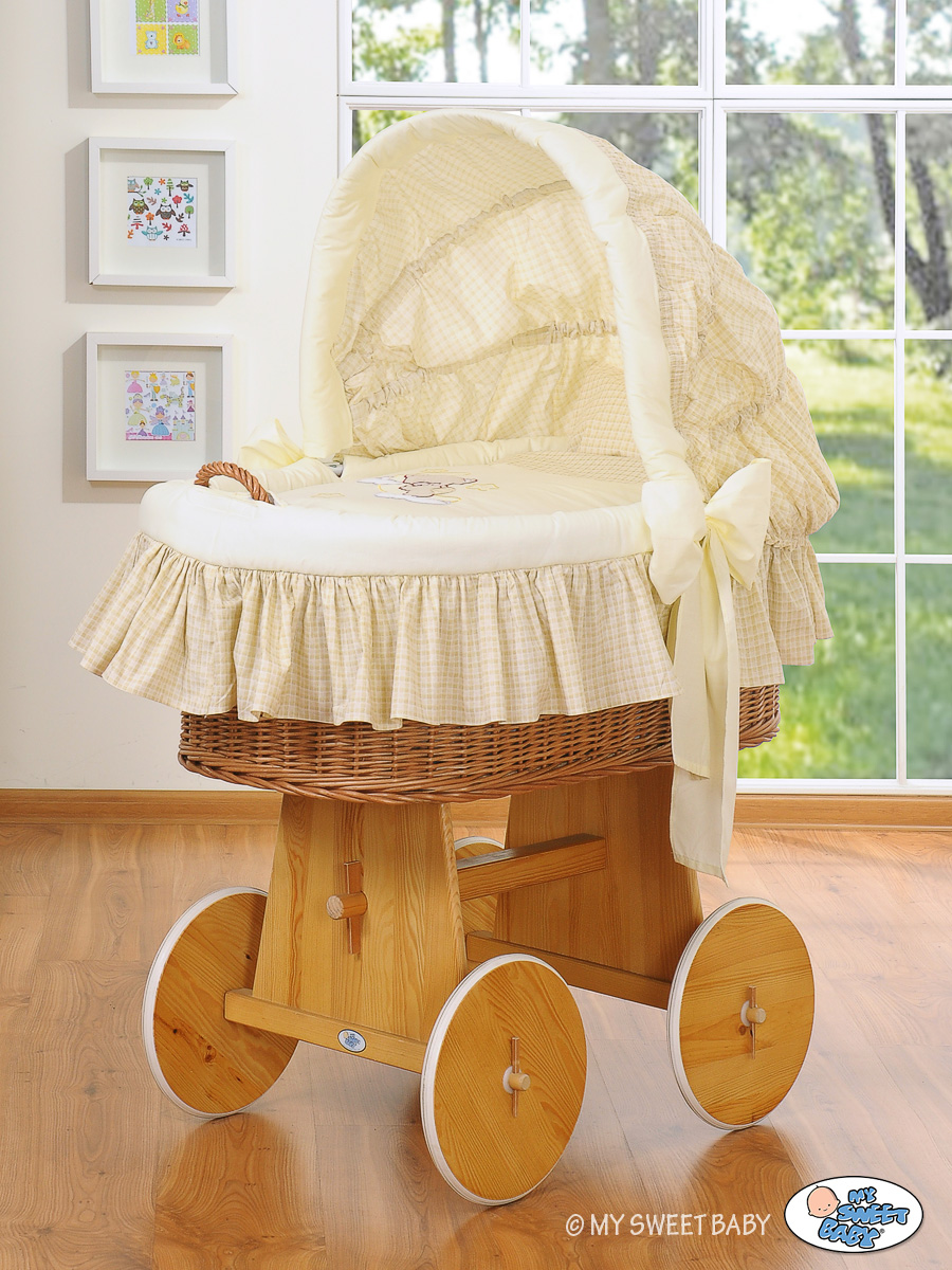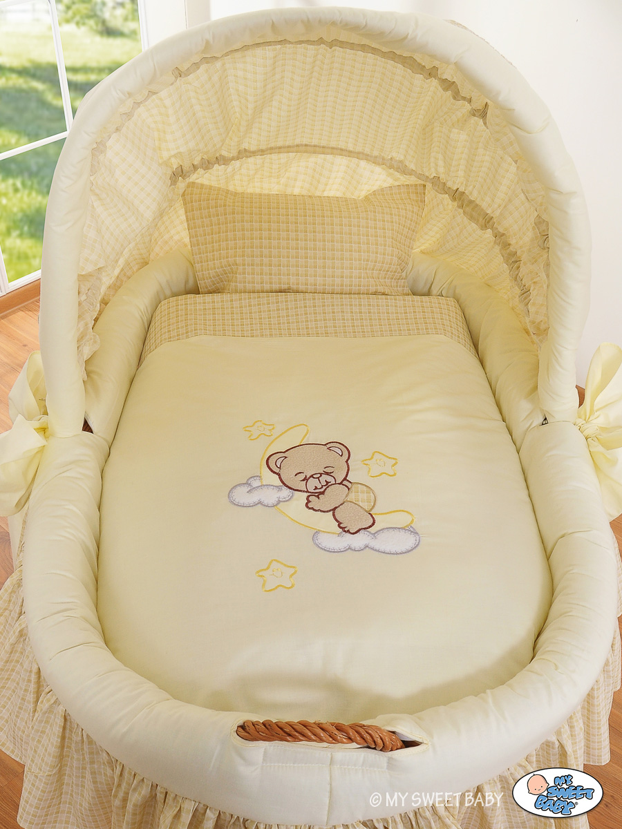 My Sweet Baby Moses Wicker Crib with Hood - Good Night cream