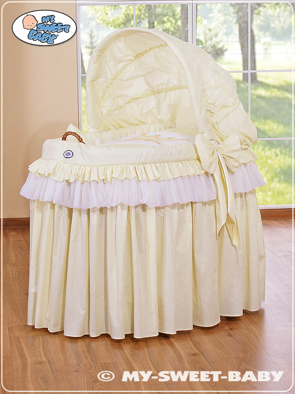 My Sweet Baby Moses Wicker Crib with Hood - Little Prince/Princess cream