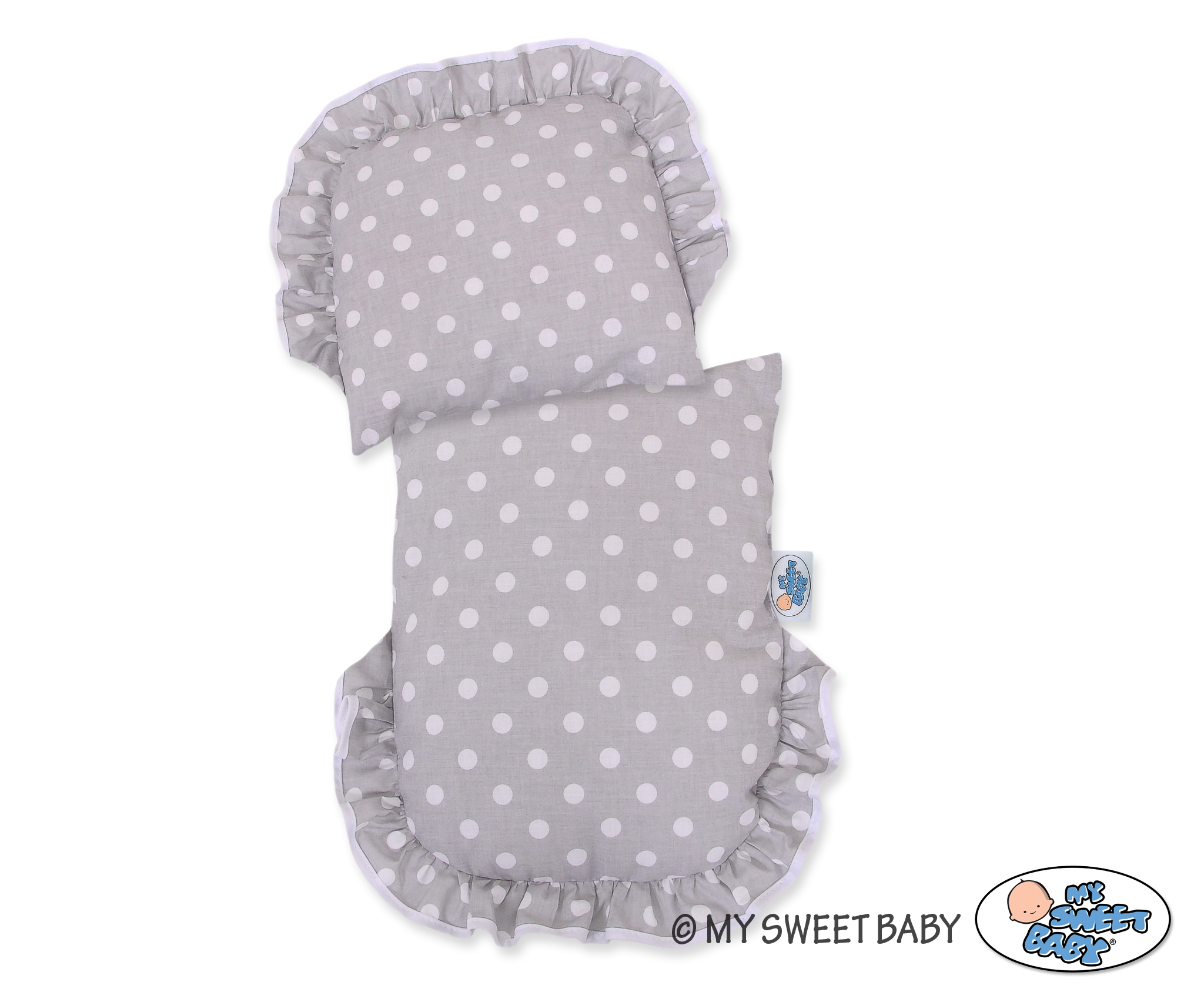 Baby Shop » Baby Toys » Doll prams » Wicker Doll prams » Natural Wicker Dolls Prams » Natural Wicker and Wood Retro Style New Doll Pram Bedding Set White Dots on Gray