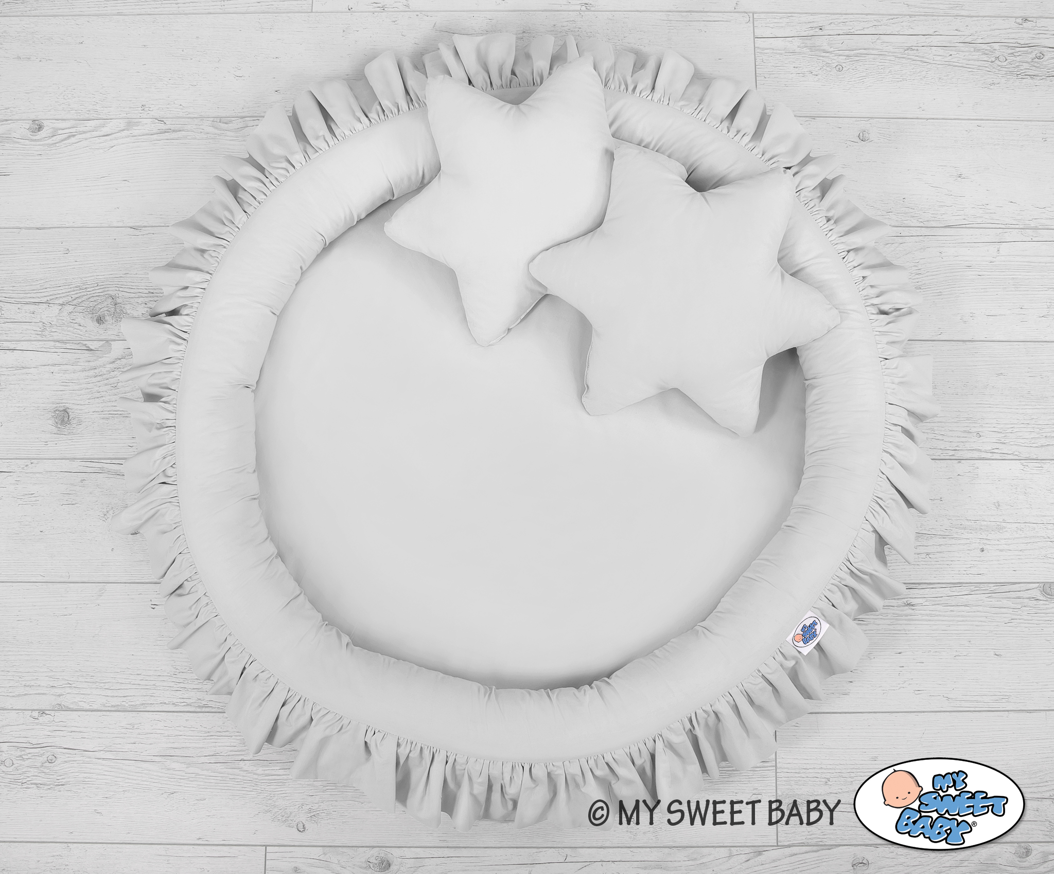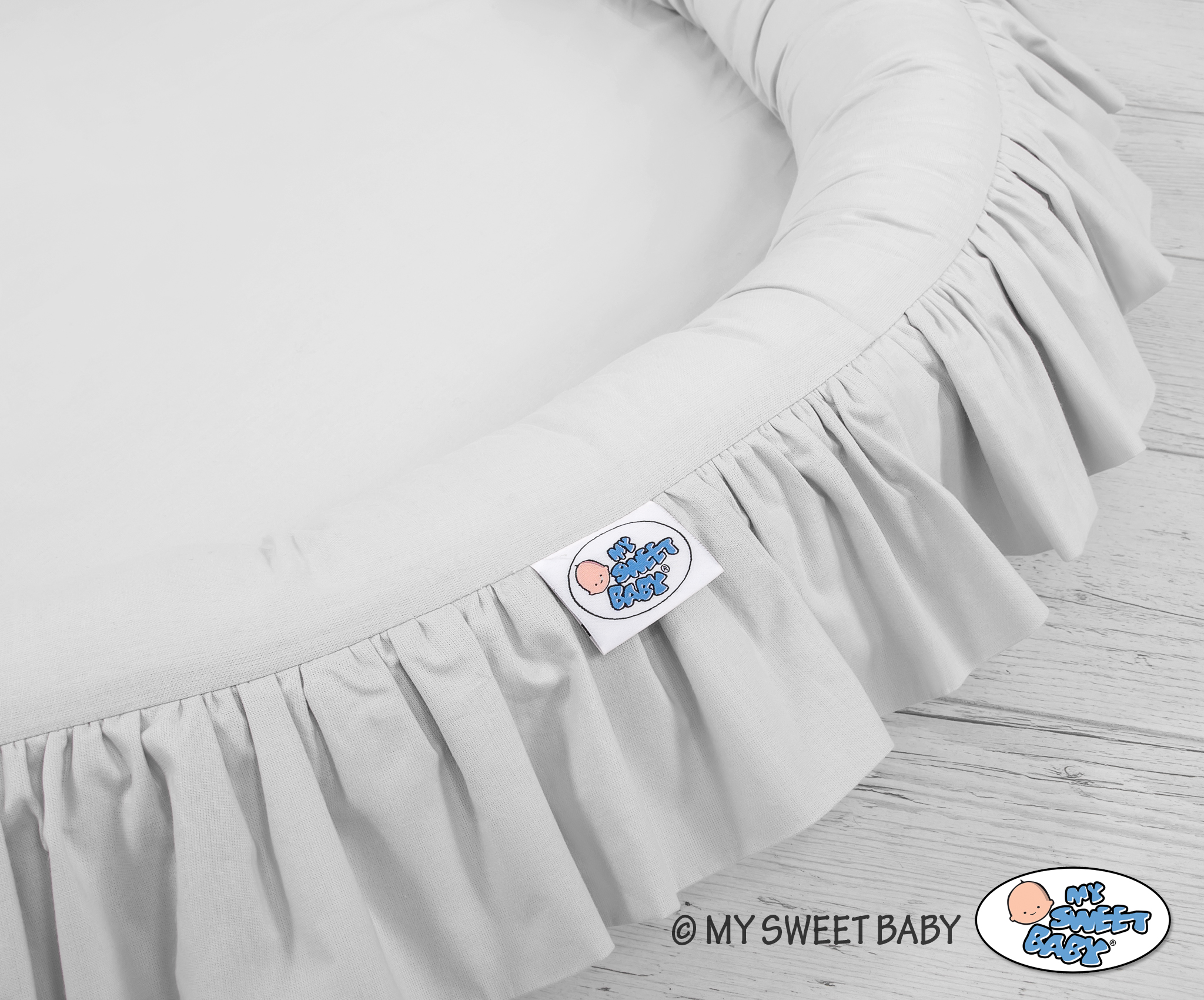 OKOTEX certified 100% cotton. The edge is filled with approved, non-allergenic filling: Eco -Fillball fibers. They are soft, resilience and they assure the proper air circulation. The bottom of the baby nest with flounce is made of a modern, anti-allergenic, attested material. The bottom inlay can be removed and the cover can be washed at 30 degrees