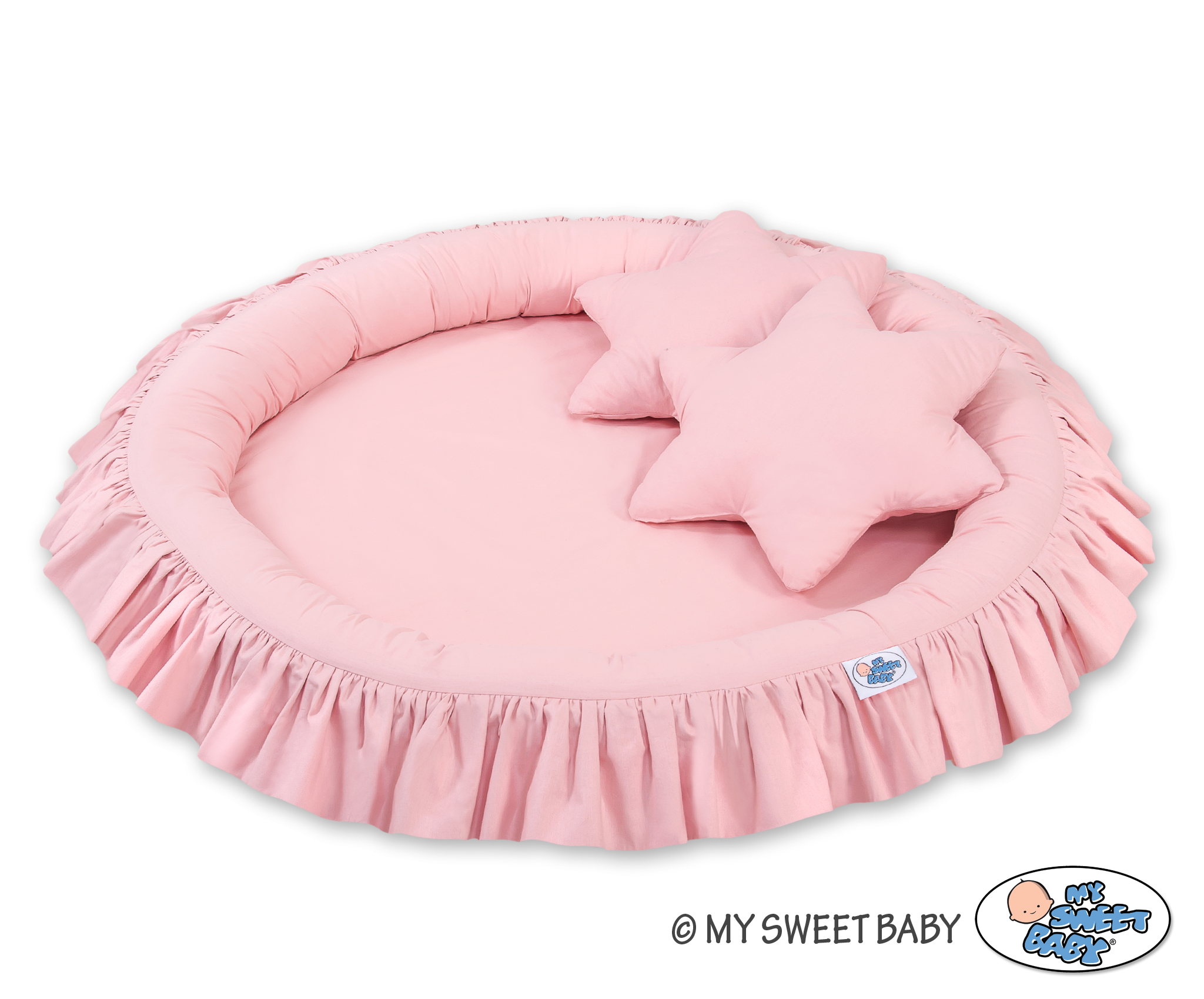 Lovely nest with a flounce. A functional and practical nest to play. The nest is ideal as a place to play, or as a floor nest for the long sky. The nest with a flounce can be used since the first days of life as a safe place to rest. The soft edges provide safety for the babies. It is perfect as a playground where many toys find their place. Combined with the long sky, creates the flounce nest a beautiful play tent.