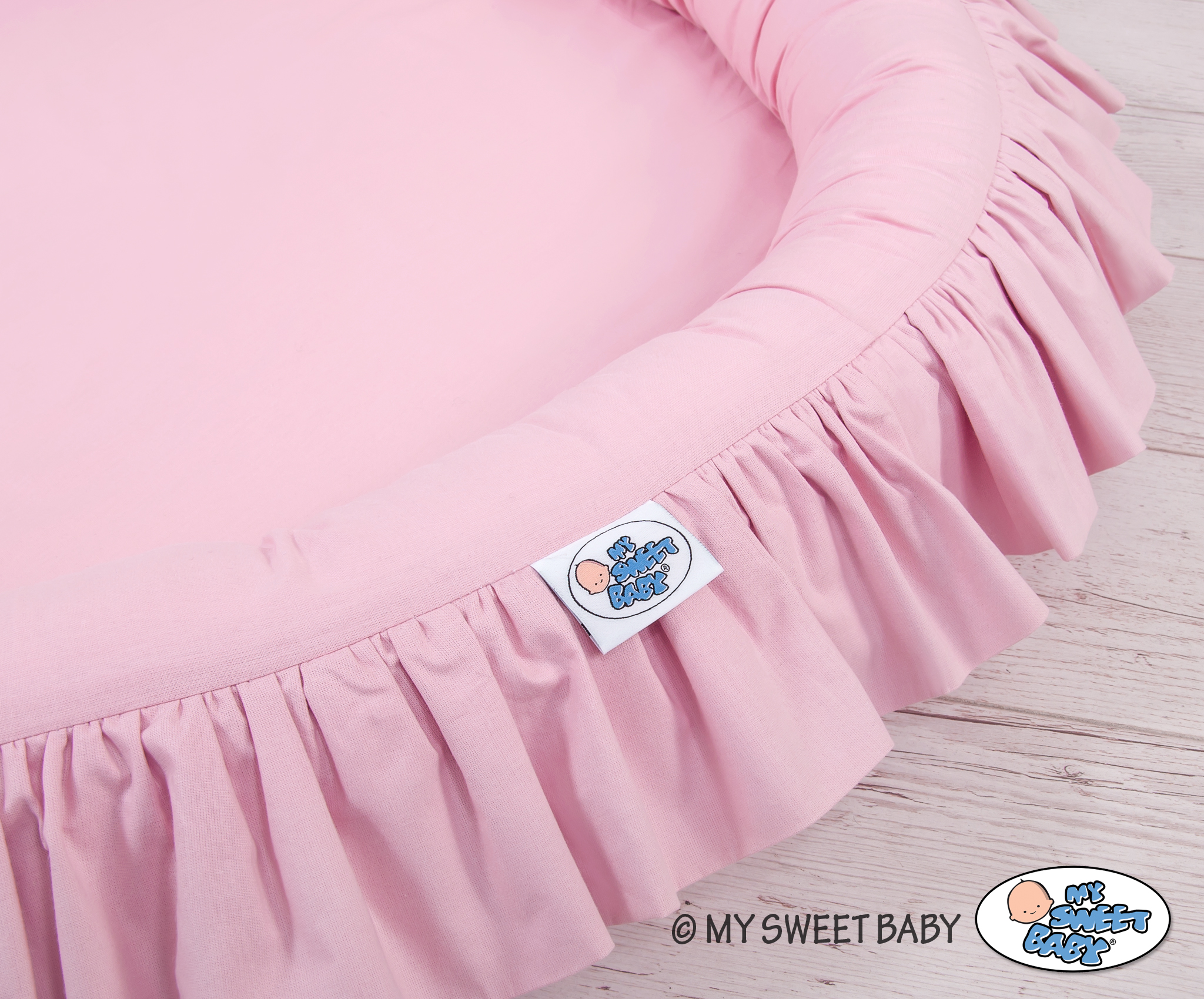 The cover is made of OKOTEX certified 100% cotton. The edge is filled with approved, non-allergenic filling: Eco -Fillball fibers. They are soft, resilience and they assure the proper air circulation. The bottom of the baby nest with flounce is made of a modern, anti-allergenic, attested material. The bottom inlay can be removed and the cover can be washed at 30 degrees.
