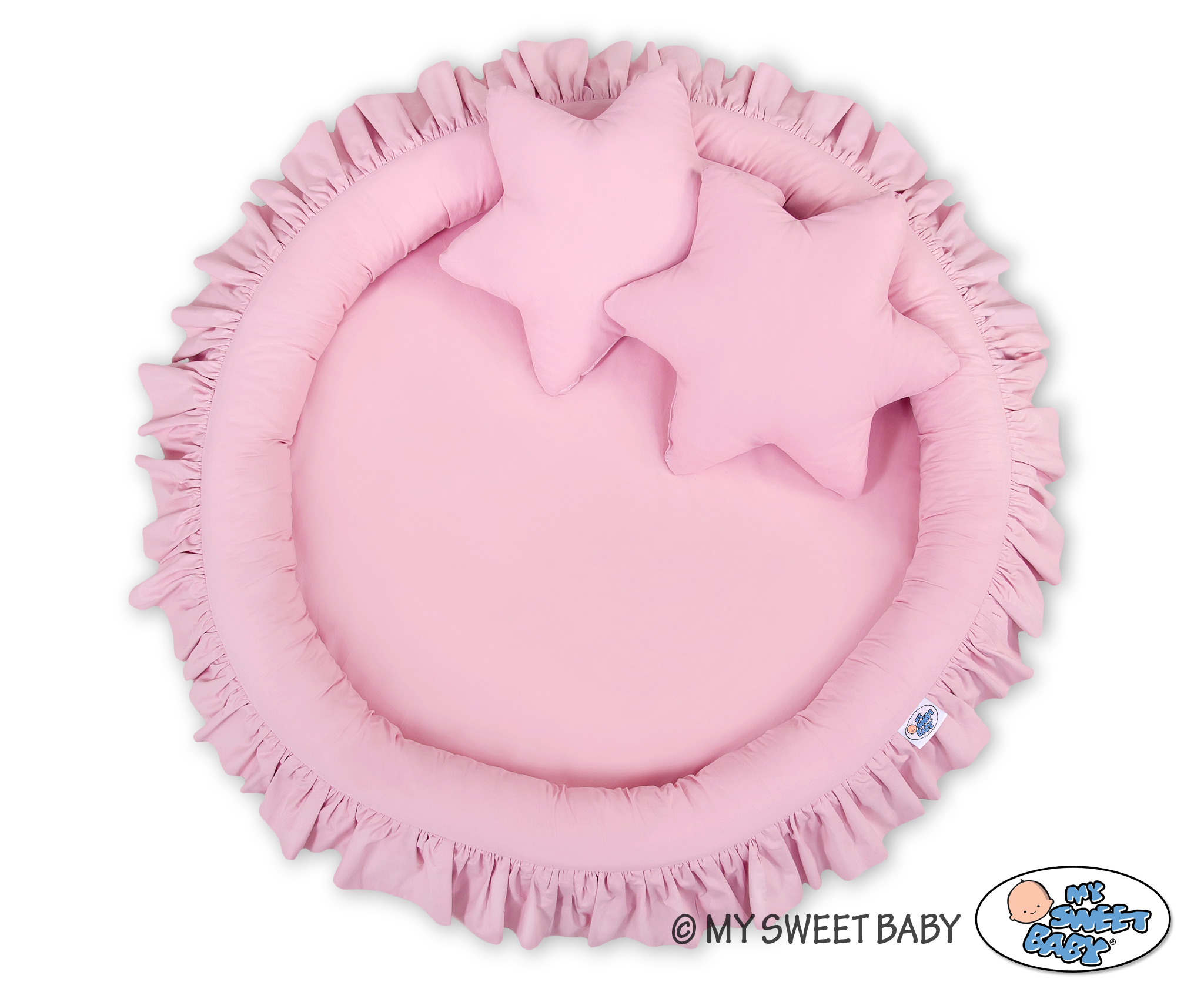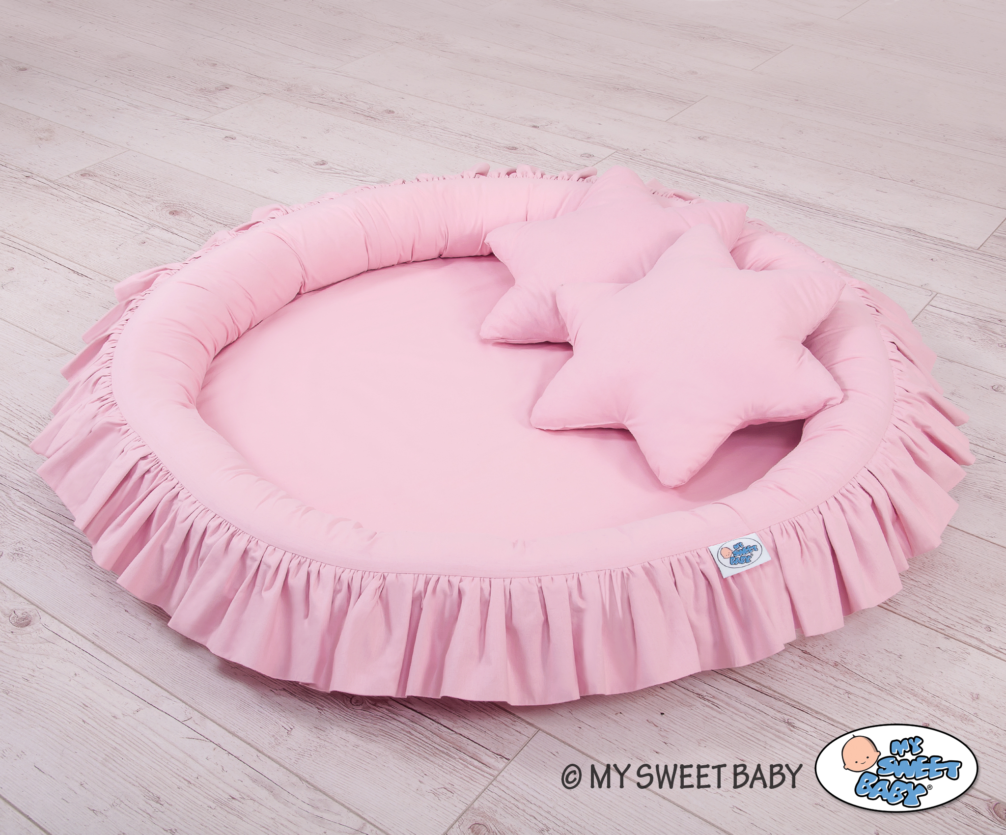 Lovely nest with a flounce. A functional and practical nest to play. The nest is ideal as a place to play, or as a floor nest for the long sky. The nest with a flounce can be used since the first days of life as a safe place to rest. The soft edges provide safety for the babies. It is perfect as a playground where many toys find their place. Combined with the long sky, creates the flounce nest a beautiful play tent.